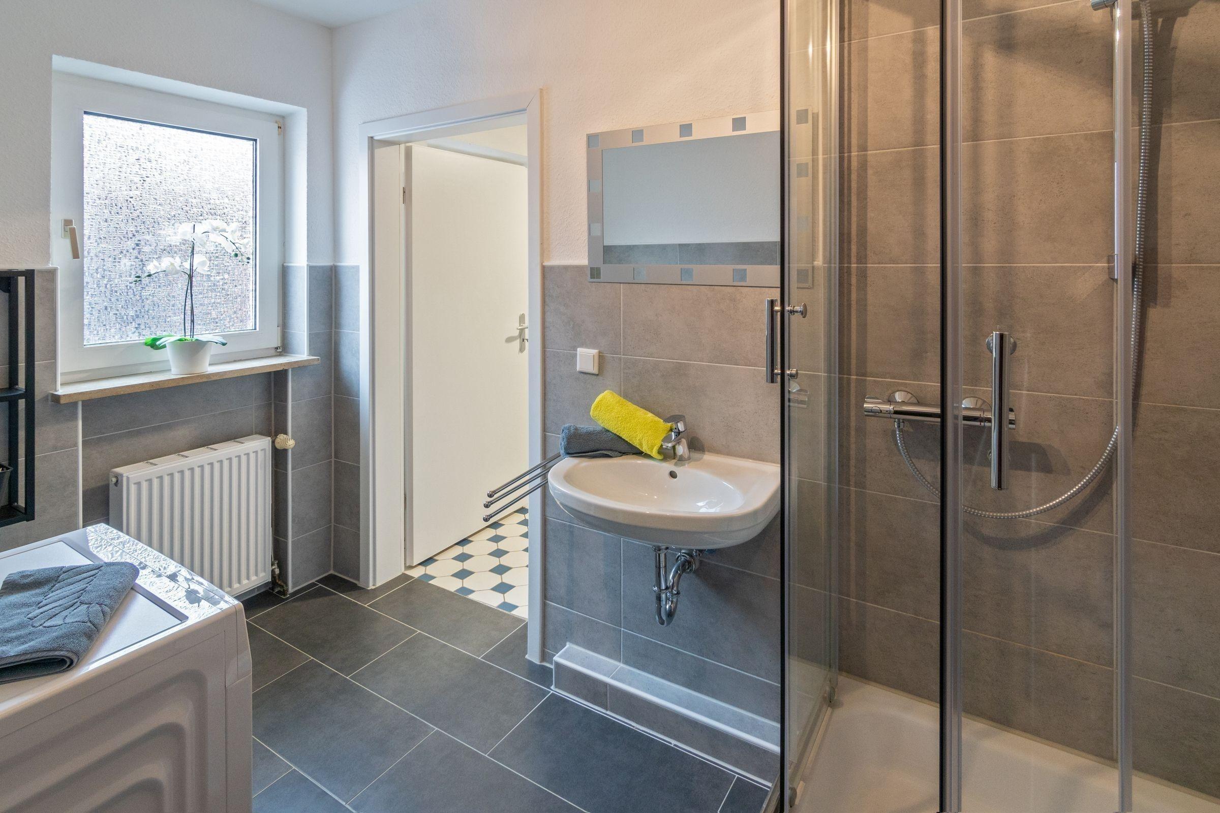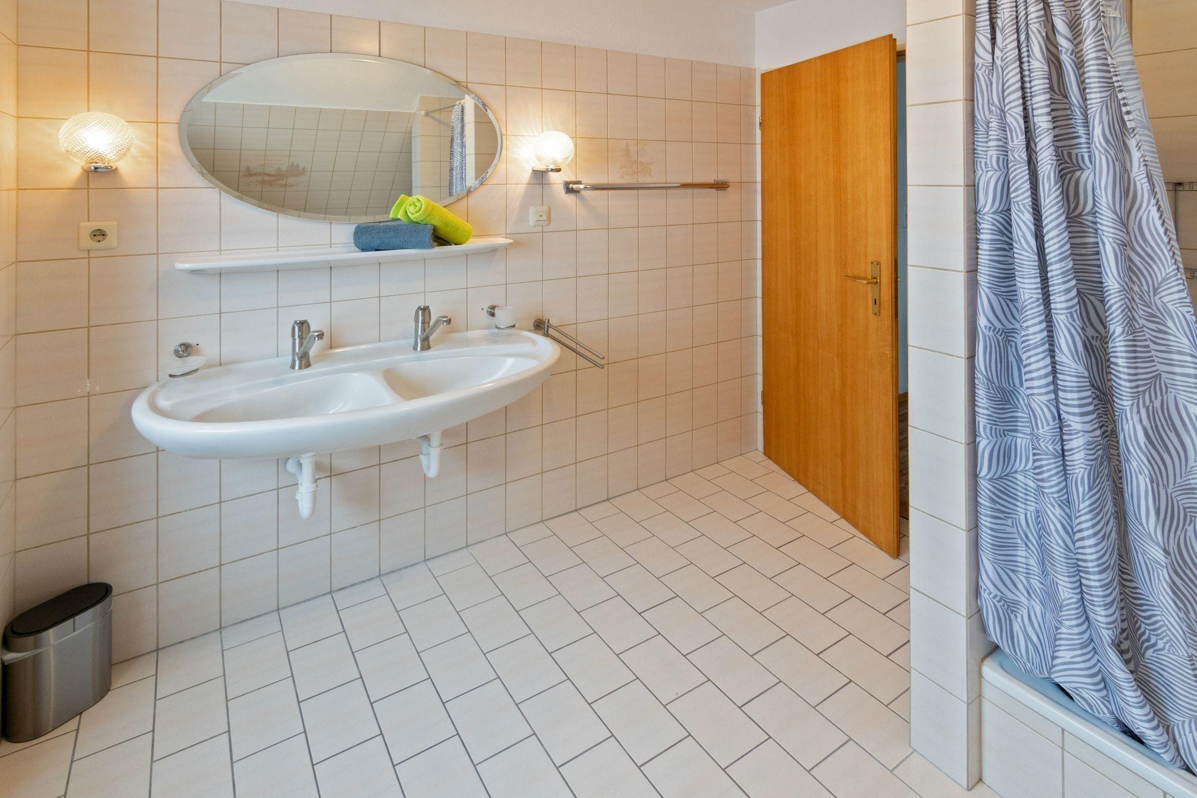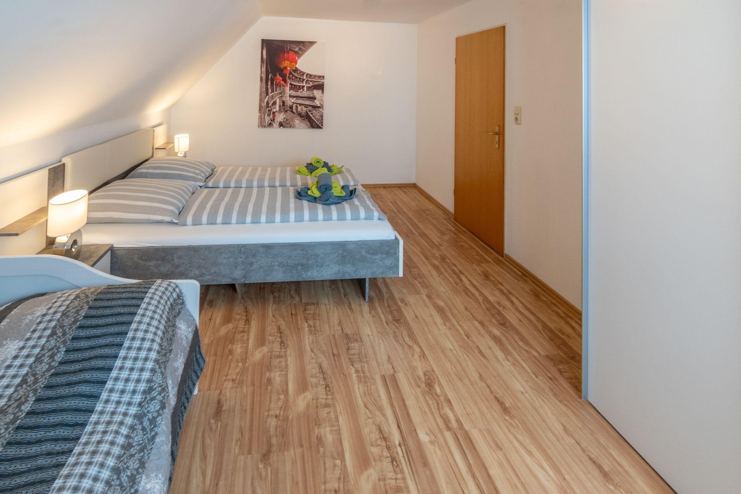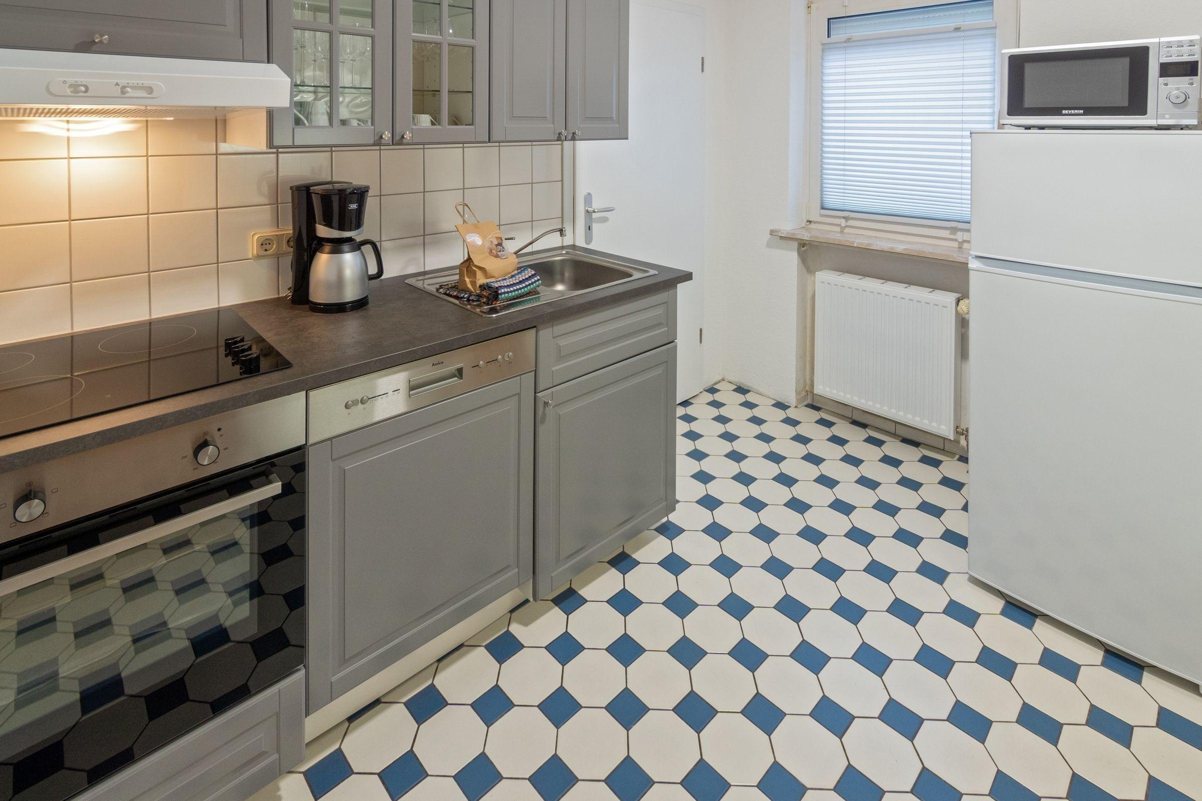 Die Ferienwohnung bietet eine großzügige und allergikergeeignete Ausstattung, die für entspannte Urlaube sorgt. Sie verfügt über 4 Schlafzimmer, darunter 2 Doppelbetten, 2 Einzelbetten und ein Kinderbett sowie eine Schlafcouch im Wohnschlafzimmer. Für die Zubereitung von Mahlzeiten steht eine separate Küche zur Verfügung, die mit einem Geschirrspüler, Elektro- und Gasherd, Backofen, Mikrowelle, Kühlschrank und Gefriermöglichkeit ausgestattet ist. Kaffeemaschine und Toaster sorgen für zusätzlichen Komfort. Die 2 Badezimmer bieten eine Dusche und eine Badewanne, ergänzt durch einen Haartrockner und einen Spiegel.