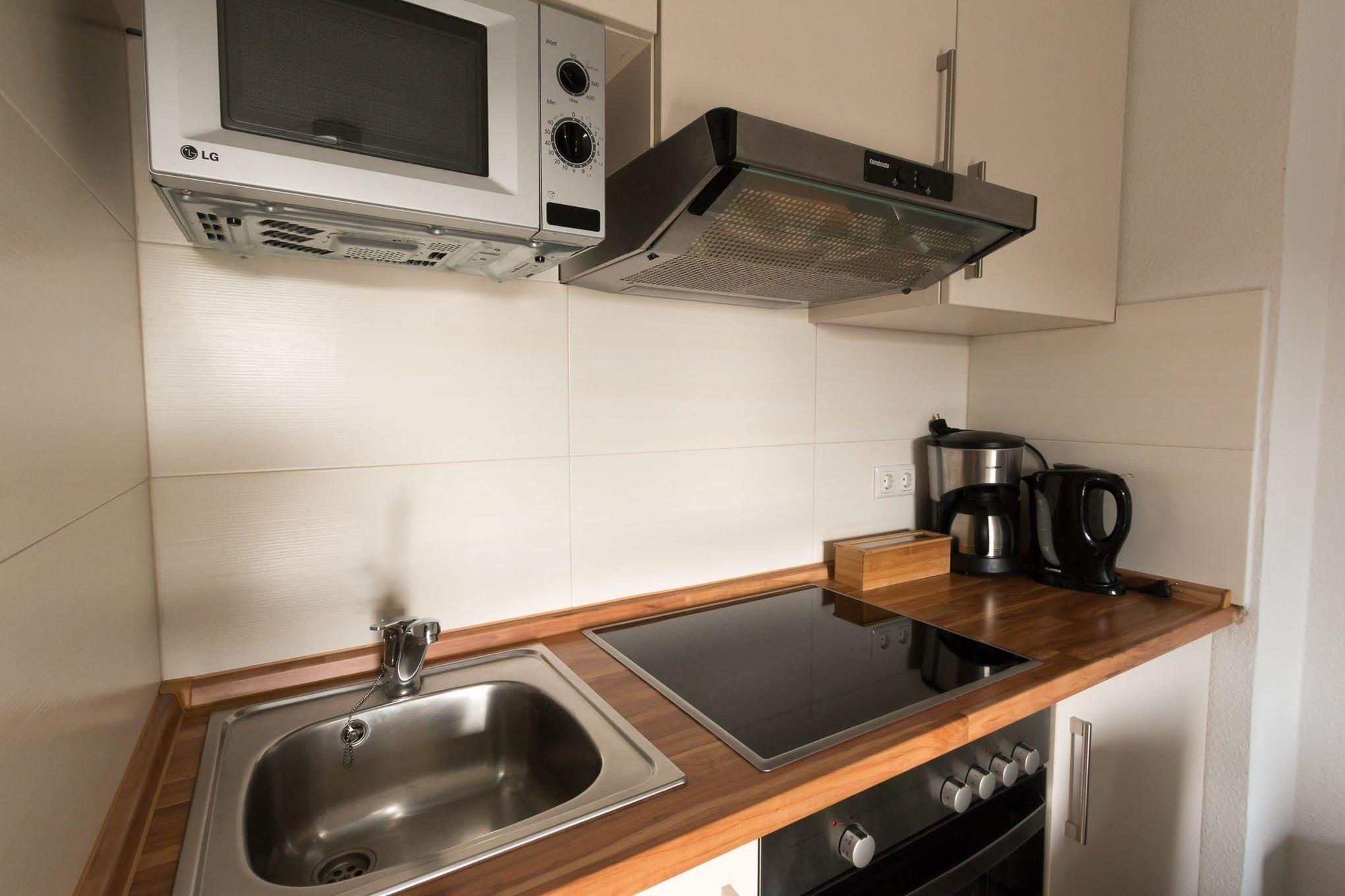 In dieser einladenden Ferienwohnung erwartet die Gäste eine harmonische Kombination aus Komfort und modernem Design. Der offene Küchenbereich ist mit einem Elektro-/Gasherd, Backofen, Mikrowelle, Kühlschrank, Gefriermöglichkeit sowie einer Kaffeemaschine und Espressomaschine ausgestattet – ideal für die Zubereitung schmackhafter Mahlzeiten. Der Essbereich mit Esstisch lädt zu geselligem Beisammensein ein.