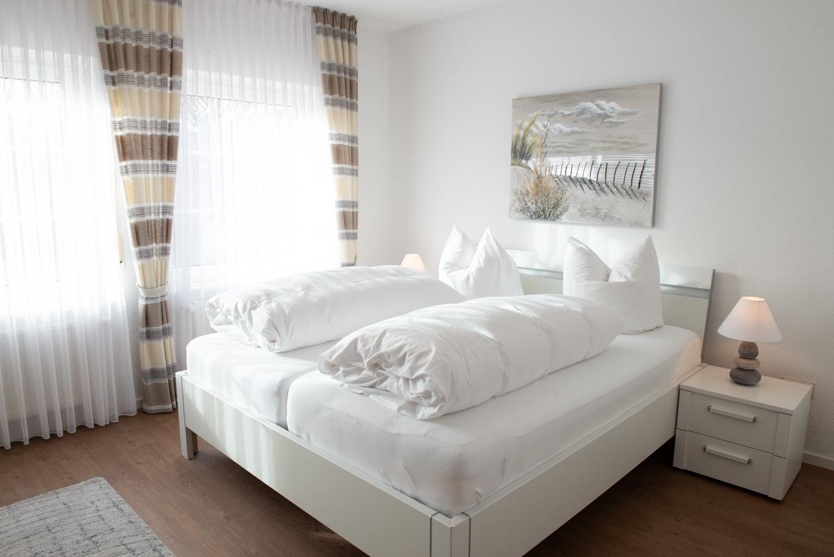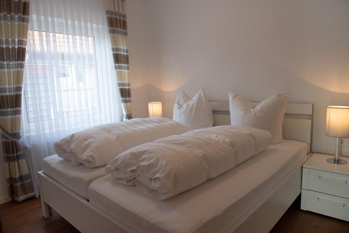 Zwei getrennte Schlafzimmer mit je einem Doppelbett, davon ist ein Schlafzimmer mit Außenrolläden und Sat/TV, und das zweite Schlafzimmer mit Veluxfenster ausgestattet.