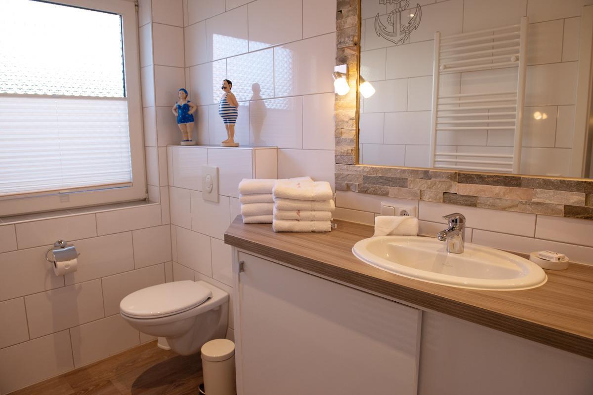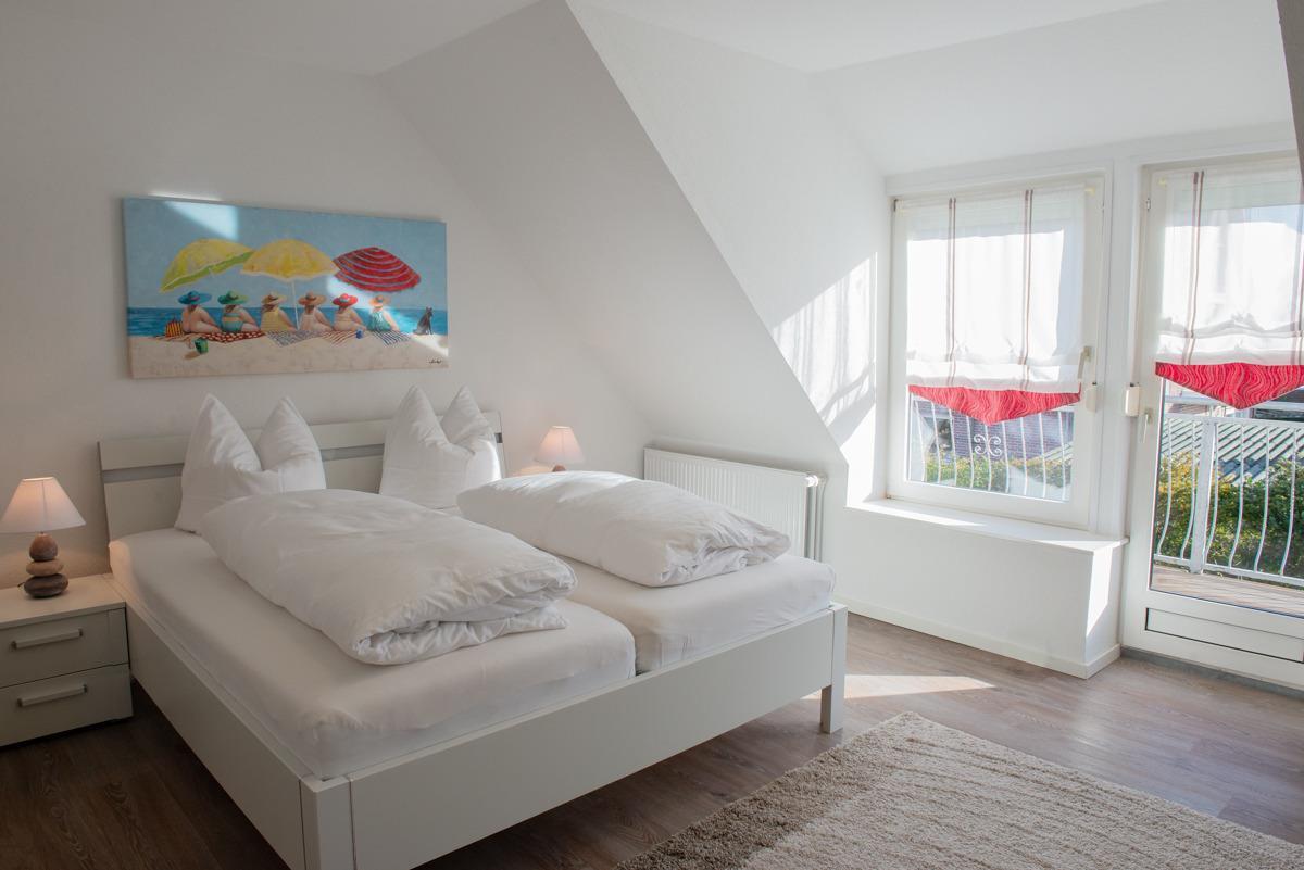 Die Ferienwohnung Stürbord verfügt über zwei getrennte Schlafzimmer im 1. OG, davon ist ein Schlafzimmer mit Außenrolläden und SAT-TV ausgestattet. Außerdem befindet sich im 1. OG ein zusätzliches WC. Das moderne Bad / WC ist mit Fenster, einer bodenebenen Dusche und einem Handtuchhalter - Heizkörper ausgestattet.