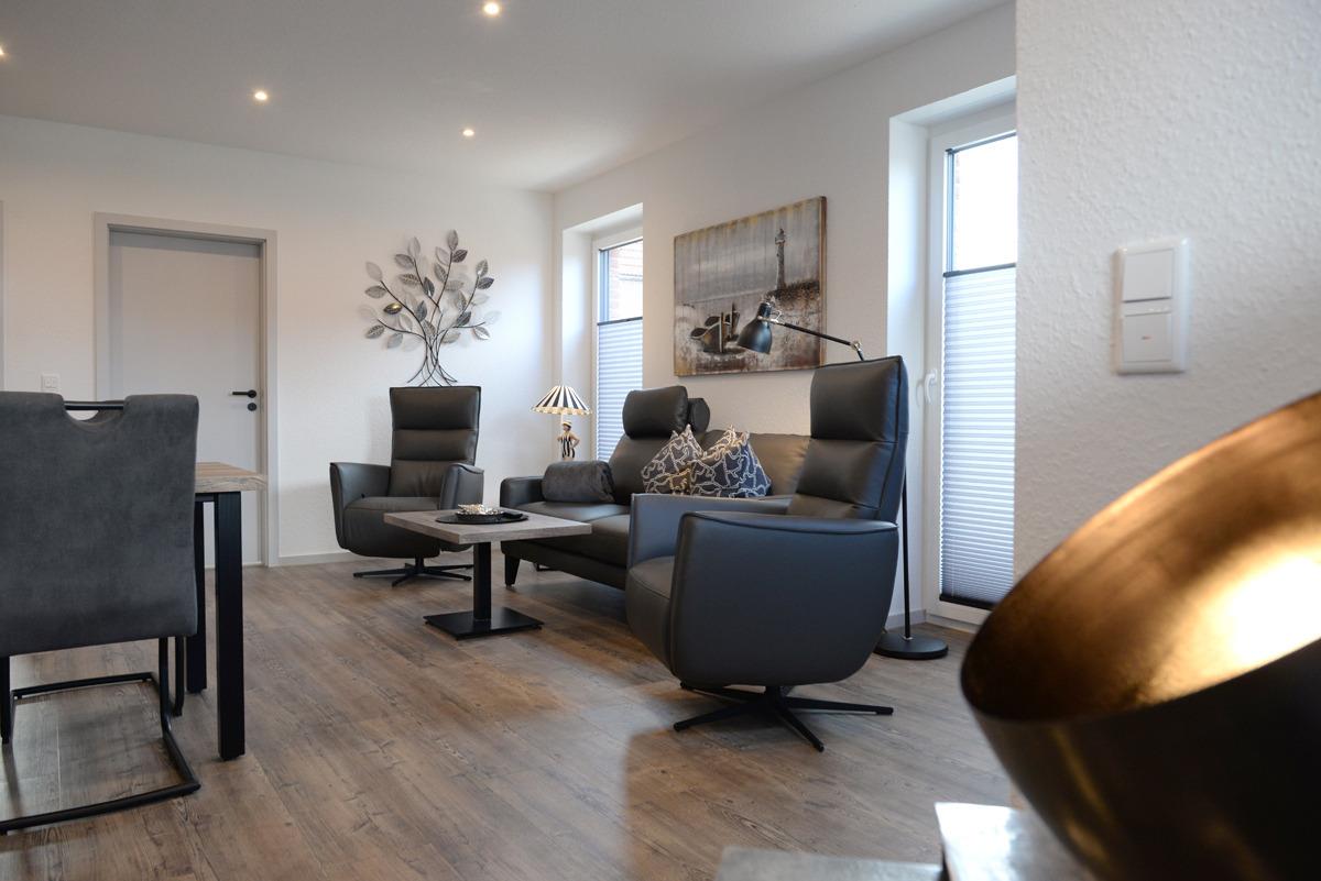 Die Ferienwohnung Deichdeck 1 UL für 2 Personen befindet sich im Erdgeschoss eines neu erbauten Ferienhauses mit insgesamt 4 Ferienwohnungen in Norddeich. Die Wohnung liegt in einer zentralen und sackgassenähnlichen Lage.