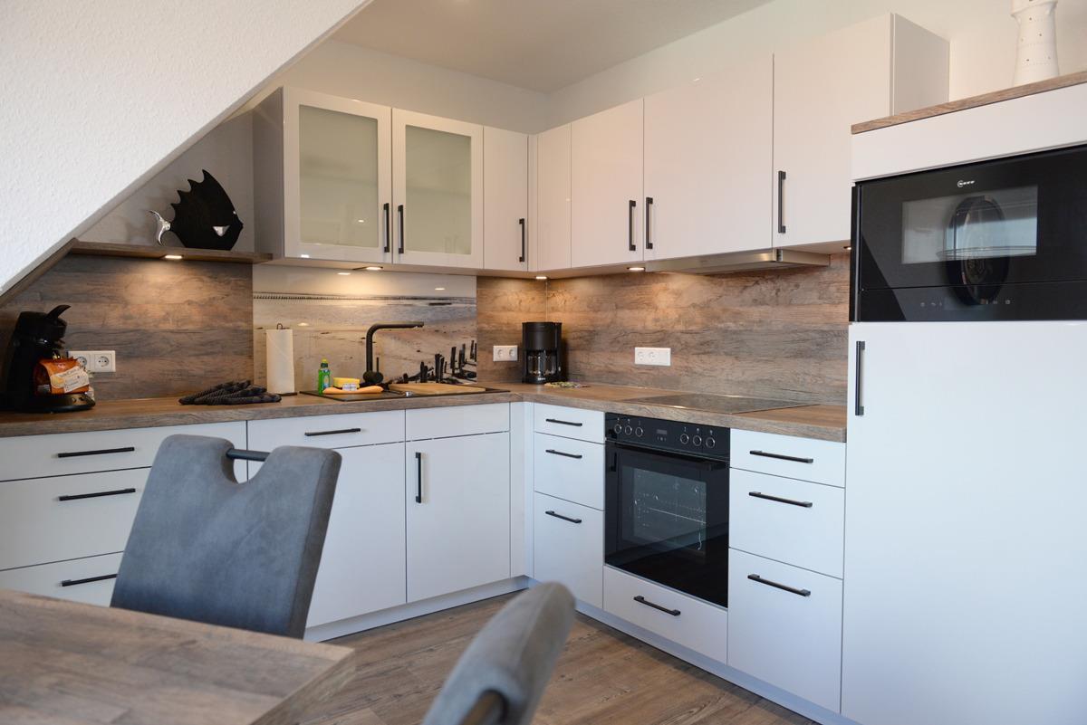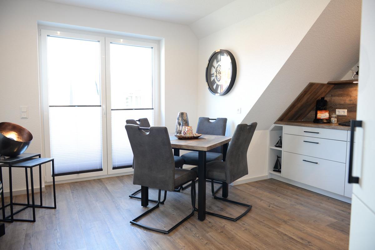 Die Ferienwohnung Deichdeck 1 OL für 2 Personen befindet sich im 1. OG eines neu erbauten Ferienhauses mit insgesamt 4 Ferienwohnungen in Norddeich. Die Wohnung liegt in einer zentralen und sackgassenähnlichen Lage. Das Wohn/Esszimmer ist mit einer gemütlichen Couch u. 2 Sessel, einem Flachbildschirm-Fernseher, einer Essgruppe und einer voll ausgestatteten Einbauküche eingerichtet. Von dort aus gelangen Sie auf einen Balkon, der mit Gartenmöbeln und einem Sonnenschirm ausgestattet ist. Dieses Plätzchen lädt Sie zum Sonnenbaden oder für den späteren Sonnenuntergang am Abend ein.