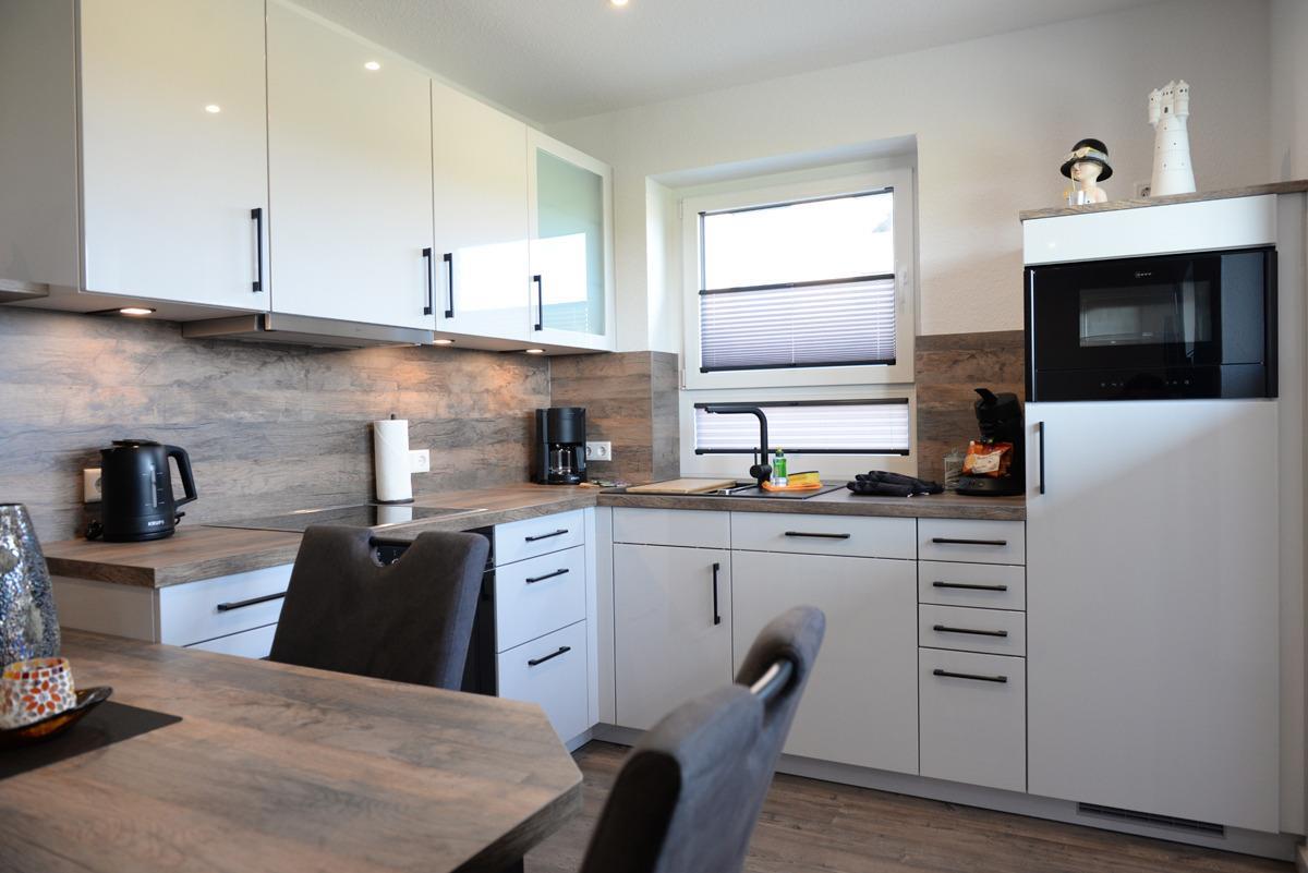 Das Wohn/Esszimmer ist mit einer gemütlichen Couch u. 2 Relaxsessel, einem Flachbildschirm-Fernseher, einer Essgruppe und einer voll ausgestatteten Einbauküche eingerichtet. Von dort aus gelangen Sie auf eine teilweise überdachte Terrasse, die mit Gartenmöbeln und Sonnenschirm ausgestattet ist. Dieses Plätzchen lädt sie zum Sonnenbaden oder für den späteren Sonnenuntergang am Abend ein.