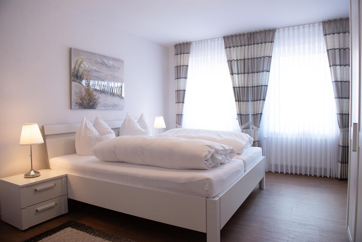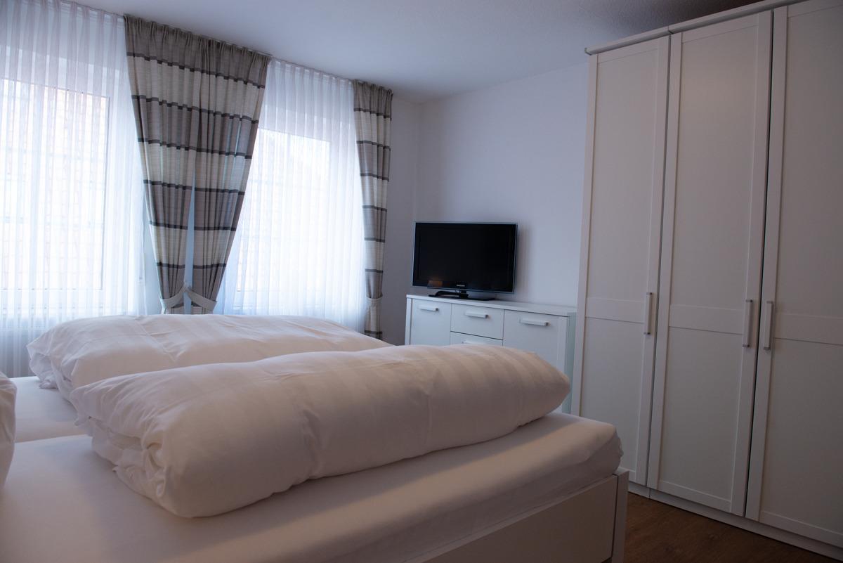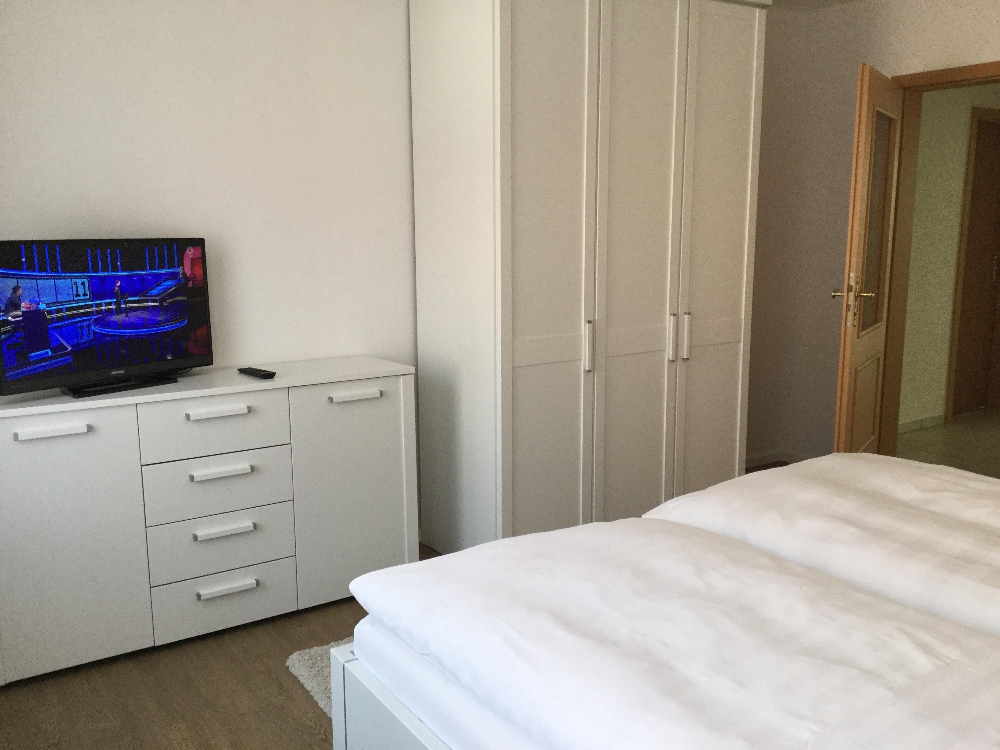 Die Wohnung verfügt über 2 getrennte Schlafzimmer, eins mit einem Doppelbett, Fernseher und Fenster, das weitere Schlafzimmer dient als Schnarch- bzw. Ausweichzimmer und besitzt wie auch die anderen Zimmer Außenrolläden.