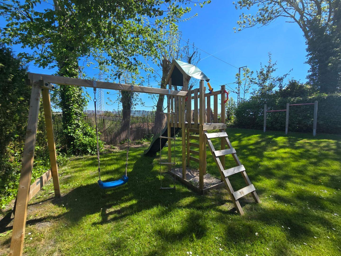 Hinter dem Haus steht eine Grünfläche zur Verfügung, die Platz zum Spielen bietet. Eine gemeinschaftliche Terrasse mit Gartenmöbeln und zwei Grills kann von allen Gästen genutzt werden. Aus Rücksicht auf die Kinder sind Hunde in diesem Bereich leider nicht erlaubt.
