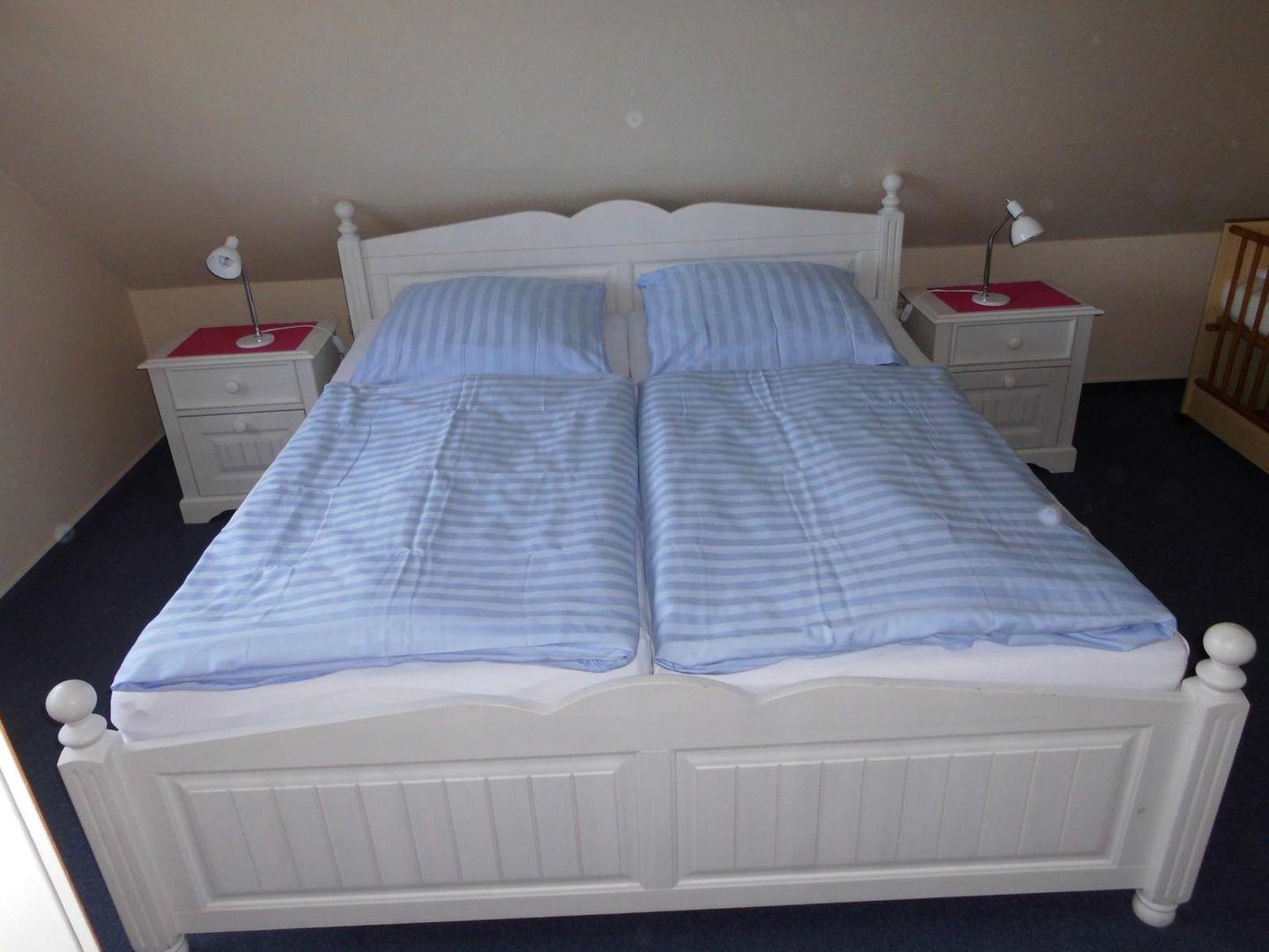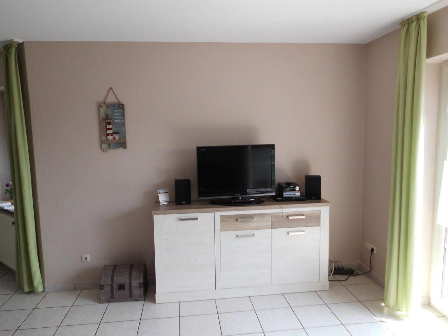 Im Erdgeschoss befindet sich der geräumige komplett geflieste Wohn- Essbereich mit gut ausgestatteter Einbauküche mit Mikrowelle, Kühlschrank, Backofen, Geschirrspülmaschine, Kaffeemaschine u.v.m.. Ein Gäste-WC befindet sich ebenfalls im EG. Im Wohnbereich befindet sich ein großer Flachbild-Fernseher, DVD-Player und eine Musikanlage. Im Obergeschoss gibt es 2 Schlafräume (1 x 1 Doppelbett, 1 x 2 Einzelbetten) und ein Duschbad mit WC und Waschmaschine.