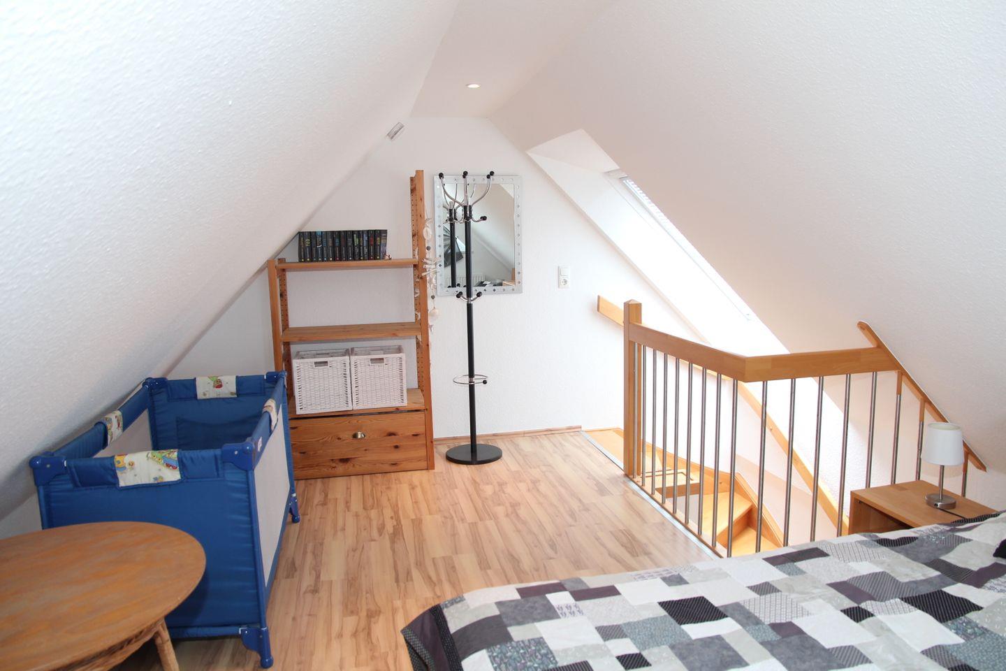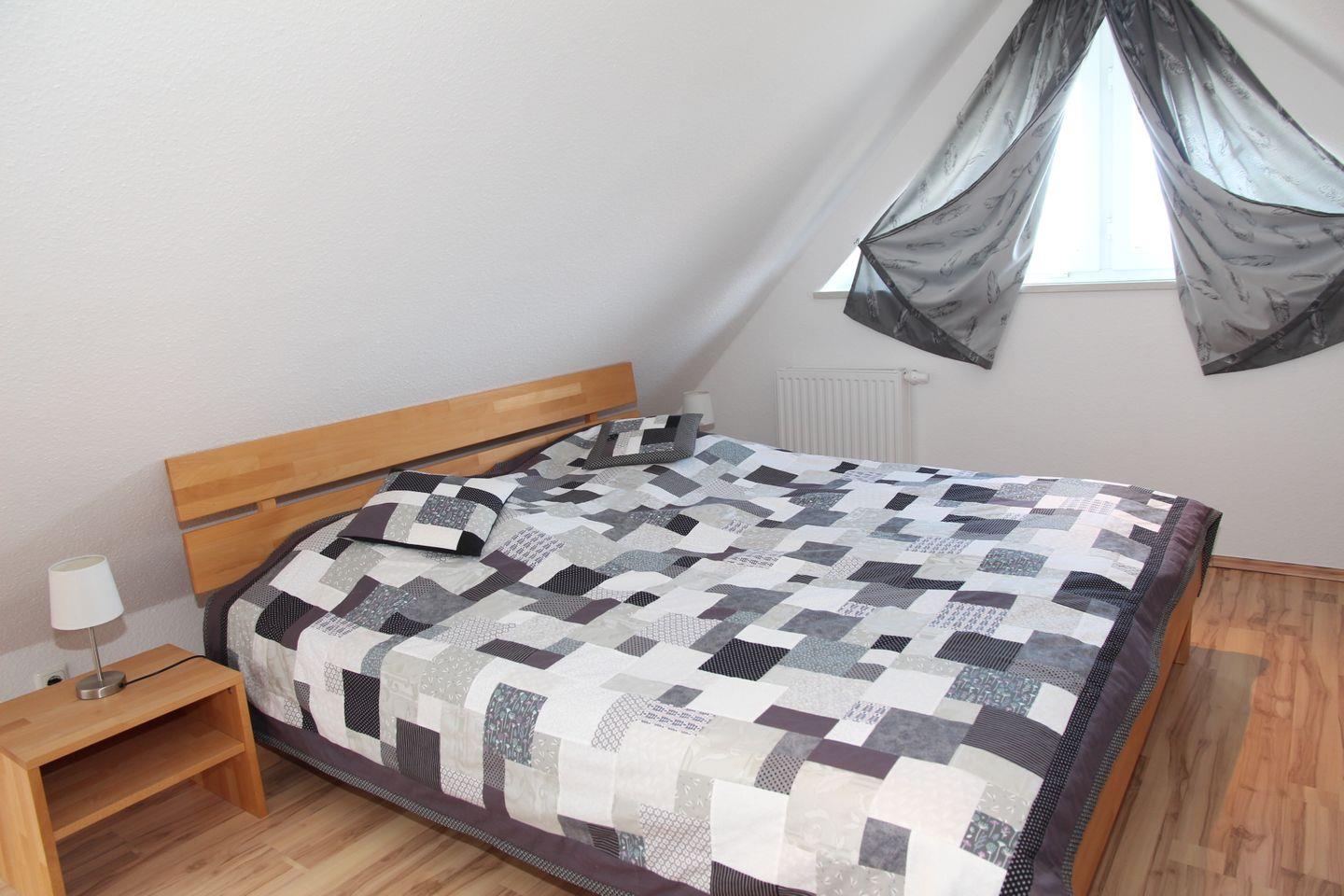 In beiden Schlafzimmern (eines im ausgebauten Dachgeschoss durch eine vollwertige Treppe zu erreichen) sind Doppelbetten vorhanden. Ein weiterer großer TV befindet sich im OG.