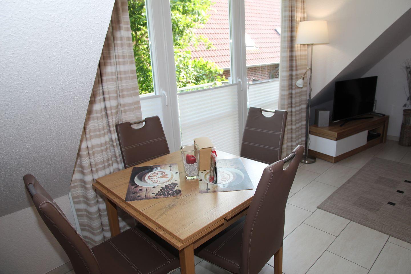 Hochwertig eingerichtete OG-Ferienwohnung für 4 Personen in zentraler Lage in Norddeich, ca. 650 m bis zur Nordsee. Die Nichtraucherwohnung liegt im ersten Stock.