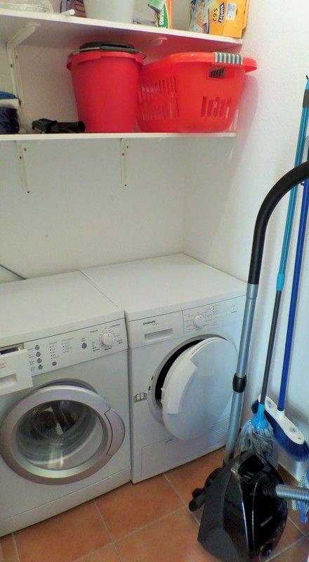 Im Erdgeschoß befindet sich eine Waschmaschine und ein Trockner.