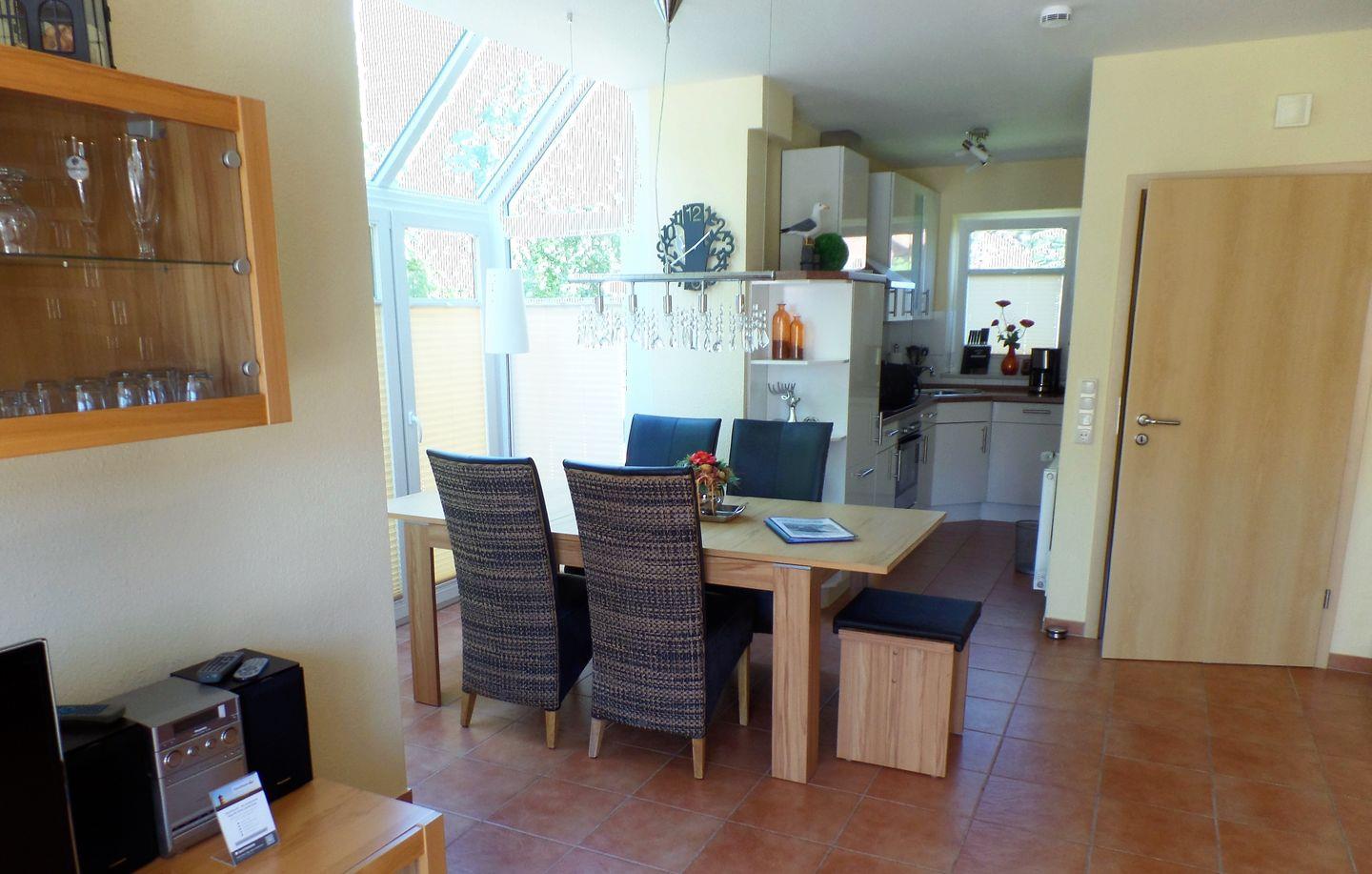 Großer Wohn-/Essbereich mit gut ausgestatteter Küche z.B. Ceran-Herd, Geschirrspüler, Gefrierfach, Wasserkocher, Kaffeemaschine, Mikrowelle, etc., Musik-Anlage, SAT-TV und DVD-Player.