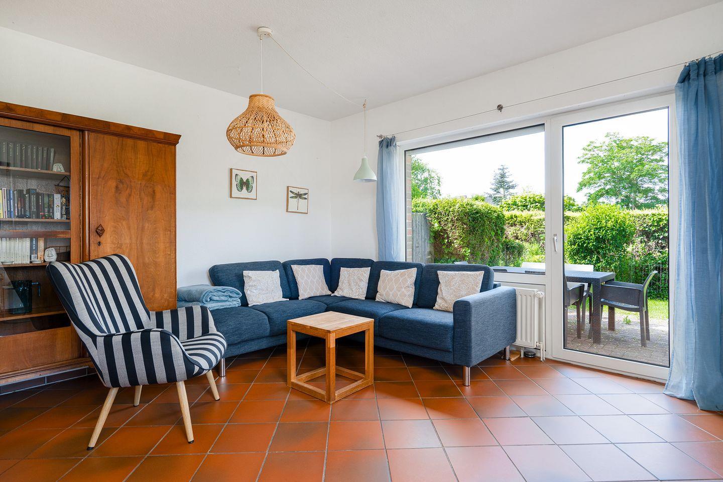 Großer Wohn-/Essbereich mit gemütlicher Sofaecke und SAT-TV mit DVD-Player. Separate voll ausgestattete kleine Küche mit z.B. Gefrierfach, Geschirrspüler, Mikrowelle, Wasserkocher, Filter-Kaffeemaschine, Ceranfeld und Backofen. Ein Hochstuhl für die kleinen Gäste ist vorhanden.