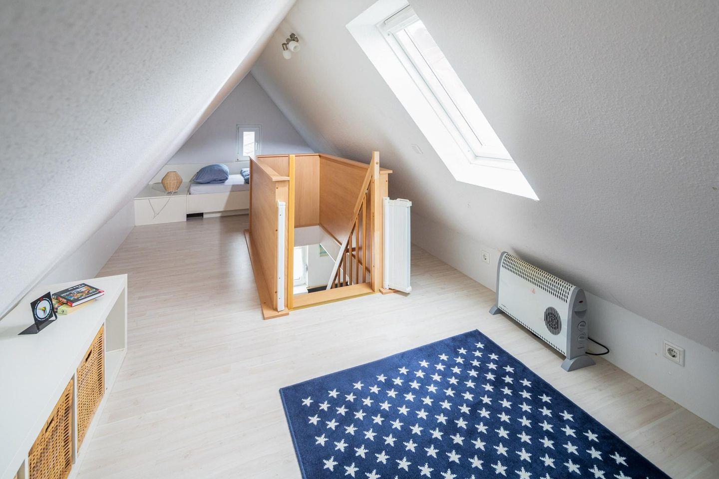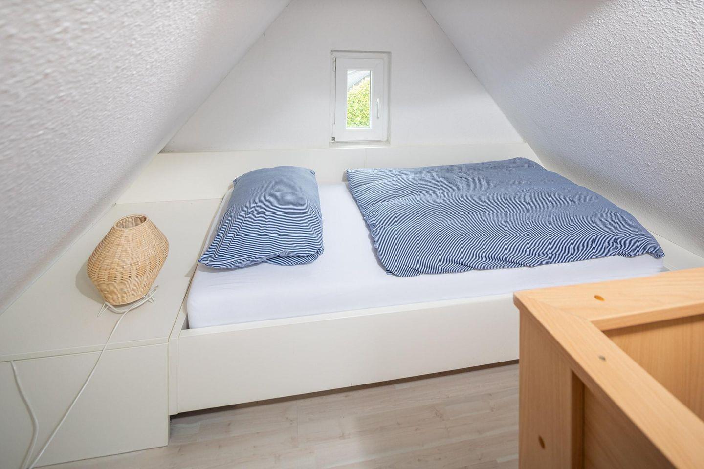Das Wohnzimmer bietet W-Lan und einen größeren Fernseher. An das Wohnzimmer grenzt die Essecke an. Das Schlafzimmer, ebenfalls mit einem Fernseher ausgestattet, verfügt über ein Doppelbett. Zu dem Duschbad gibt es ein separates WC. Der zusätzliche Schlafbereich auf dem ausgebauten Spitzboden ist über eine Treppe vom Wohnzimmer aus erreichbar. Der Schlafraum wurde mit zwei Einzelbetten (sehr gut für Kinder) ausgestattet. Hier ist zu beachten, dass es nur eine eingeschränkte Stehhöhe in der Mitte in Höhe von 180cm gibt. Im Garten befindet sich eine überdachte Terrasse mit Tisch und Stühlen. Eine Waschmaschine und ein Wäschetrockner stehen (zur gemeinschaftlichen Nutzung) zur Verfügung, was besonders für längere Aufenthalte von Vorteil ist. Ein PKW-Stellplatz am Haus gehört ebenfalls zur Wohnung. Hier darf auch der vierbeinige Freund mitkommen, denn die Ferienwohnung heißt auch Hunde herzlich willkommen. Erlaubt ist maximal 1 Hund (Höhe maximal kniehoch).