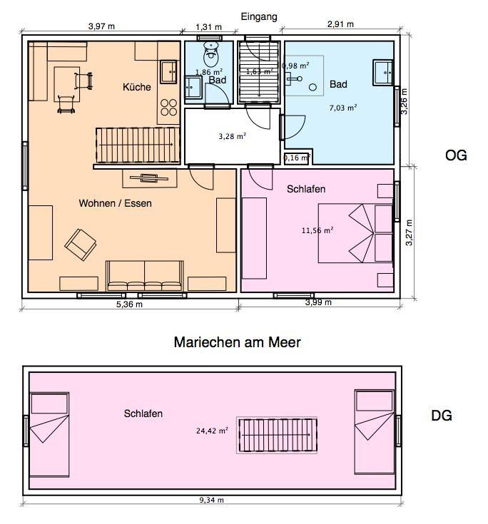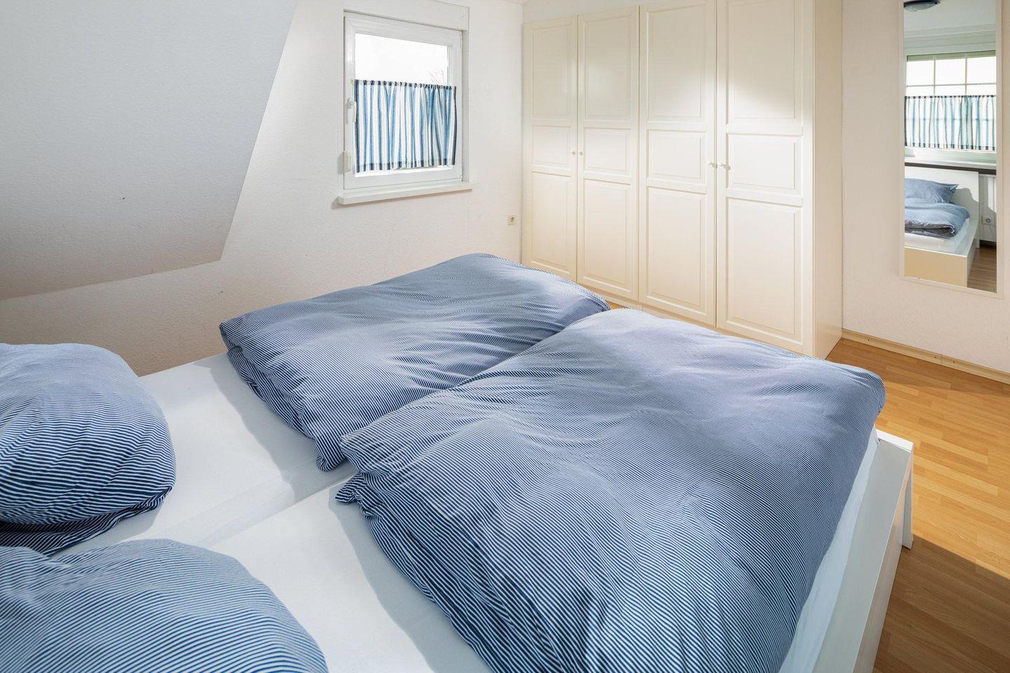 Die Ferienwohnung "Mariechen 2" erstreckt sich über 52 Quadratmeter im Obergeschoss und Spitzboden und bietet Platz für bis zu vier Personen. Die Wohnung liegt hinter dem Deich, so dass es nur weniger Gehminuten bis zum Norddeich-Strand bedarf. Der Fährhafen der Reederei Frisia AG (von dort aus fahren die Fähren zu den Inseln Juist und Norderney) ist nur ca. 200m entfernt.