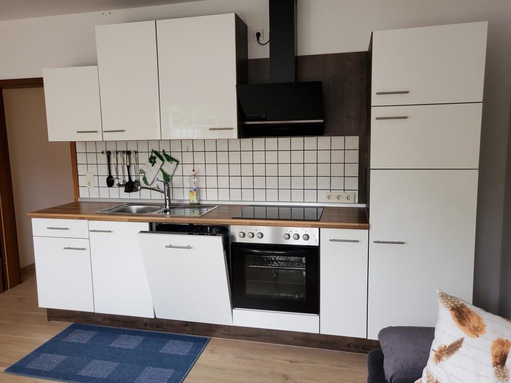 Die 2-Raum-Ferienwohnung im Erdgeschoss verfügt über ein separates Schlafzimmer mit Doppelbett, Wohnraum (TV) mit Küchenzeile (Backofen, Spülmaschine) und Essecke sowie separates Badezimmer mit Dusche/WC. Vom Wohnraum haben Sie Zugang zur Terrasse. PKW Stellplatz am Haus!