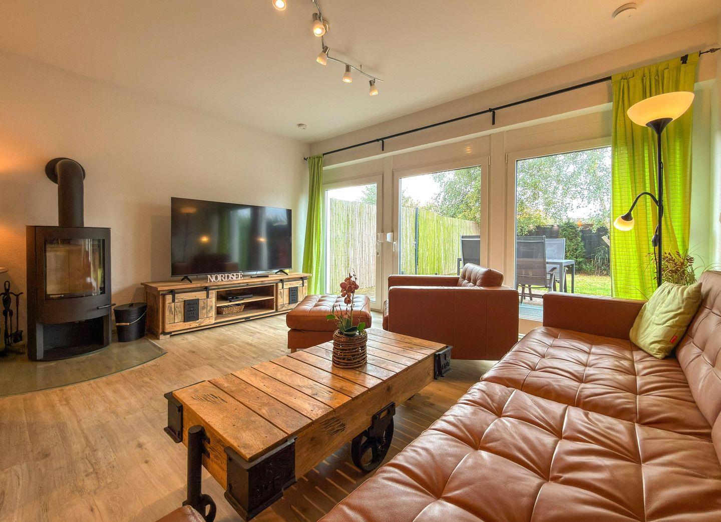 Dat Ferienhus Norddeich: Exklusive EG-Wohnung mit Terrasse, Kamin u. eingezäuntem Garten