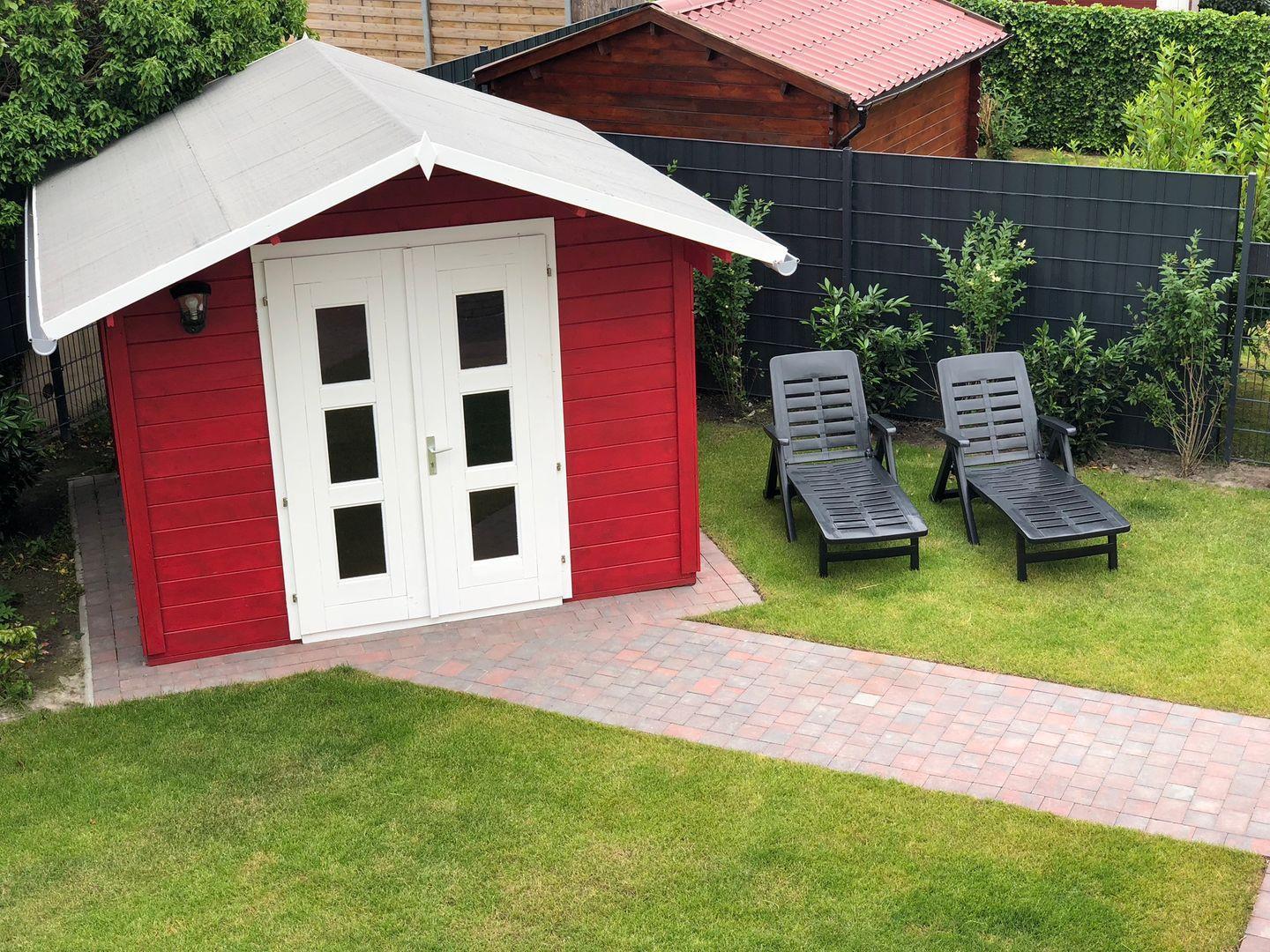 Ein weiteres Highlight ist der Garten, denn diese Wohnung verfügt als einzige über einen großen, privaten, hoch eingezäunten Garten mit eigenem Gartenhaus. Auf der Terrasse können Sie aufgrund der Süd-West-Ausrichtung nachmittags und abends schöne, sonnige Stunden verbringen. Die Terrasse ist ausgestattet mit einem gemütlichen ostfriesischen Strandkorb, hochwertigen Gartenmöbeln, zwei Sonnenliegen samt Sonnenschirm und einem Grill. Ideal für Tierfreunde: Der Garten ist komplett eingezäunt und sowohl von der Terrasse als auch durch ein abschließbares Gartentor vom Ferienwohnungs-Parkplatz erreichbar. Über einen Privatweg können ausschließlich die Gäste unseres Ferienhauses nach nur 50m zur Norddeicher Straße gelangen, wo Sie viele Restaurants, Cafés und Geschäfte vorfinden. Im Außenbereich haben Sie außerdem die Möglichkeit, Ihre Fahrräder oder anderen Gegenstände in Ihrem abschließbaren Gartenhaus unterzubringen. E-Bikes können im Gartenhaus an zahlreichen Steckdosen kostenlos aufgeladen werden.
