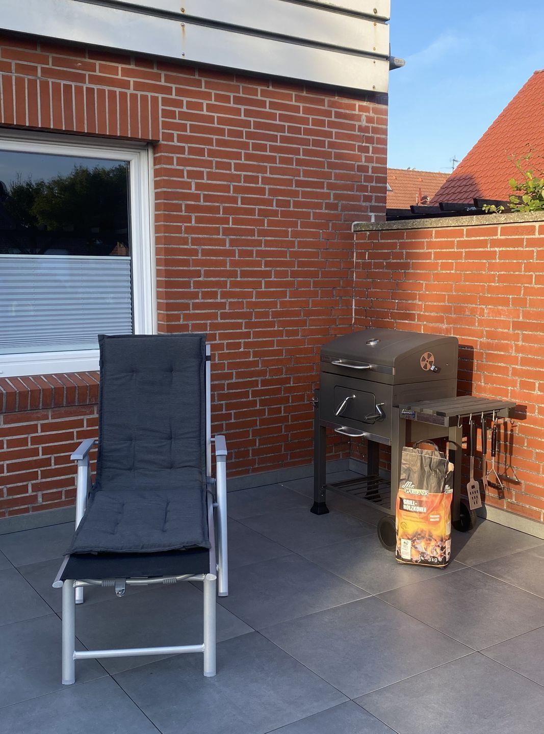 Terrasse: Eigene Terrasse für entspannte Stunden an der frischen Nordseeluft.