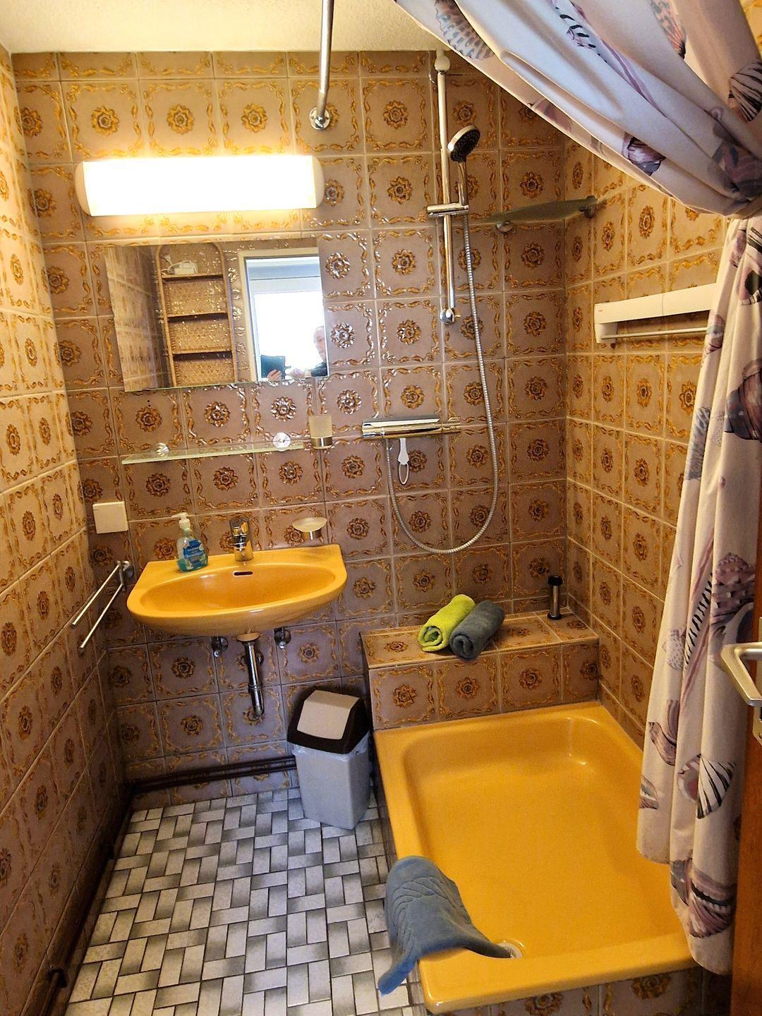 Das Apartment verfügt über ein Wohn-/Schlafzimmer, eine Küchenzeile sowie ein Bad mit Dusche und Fenster.