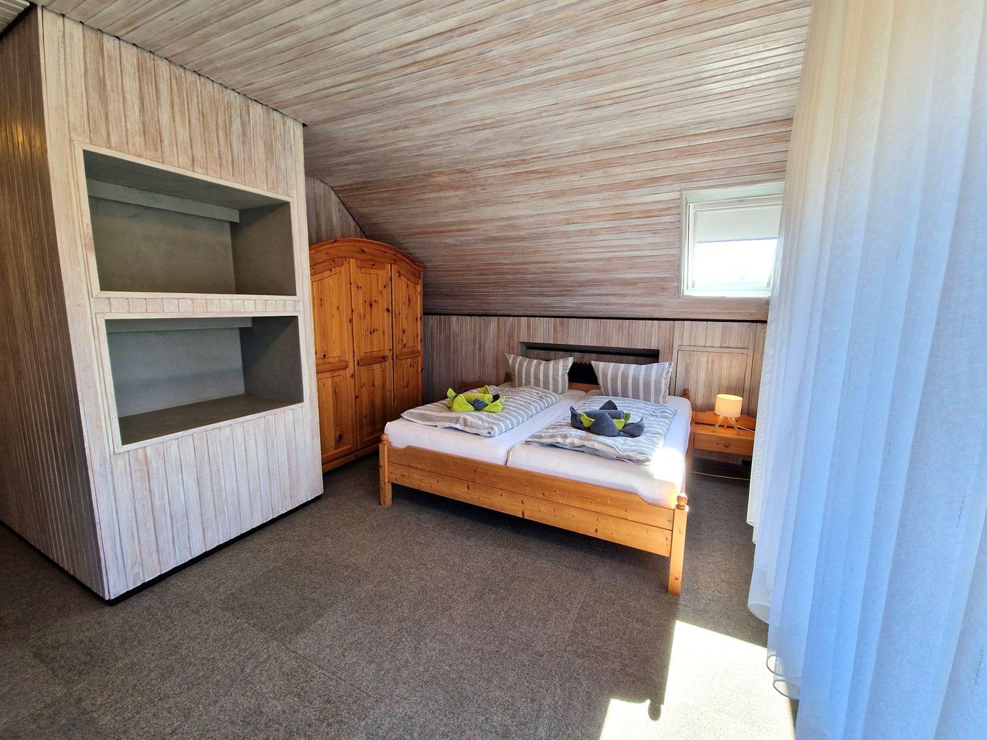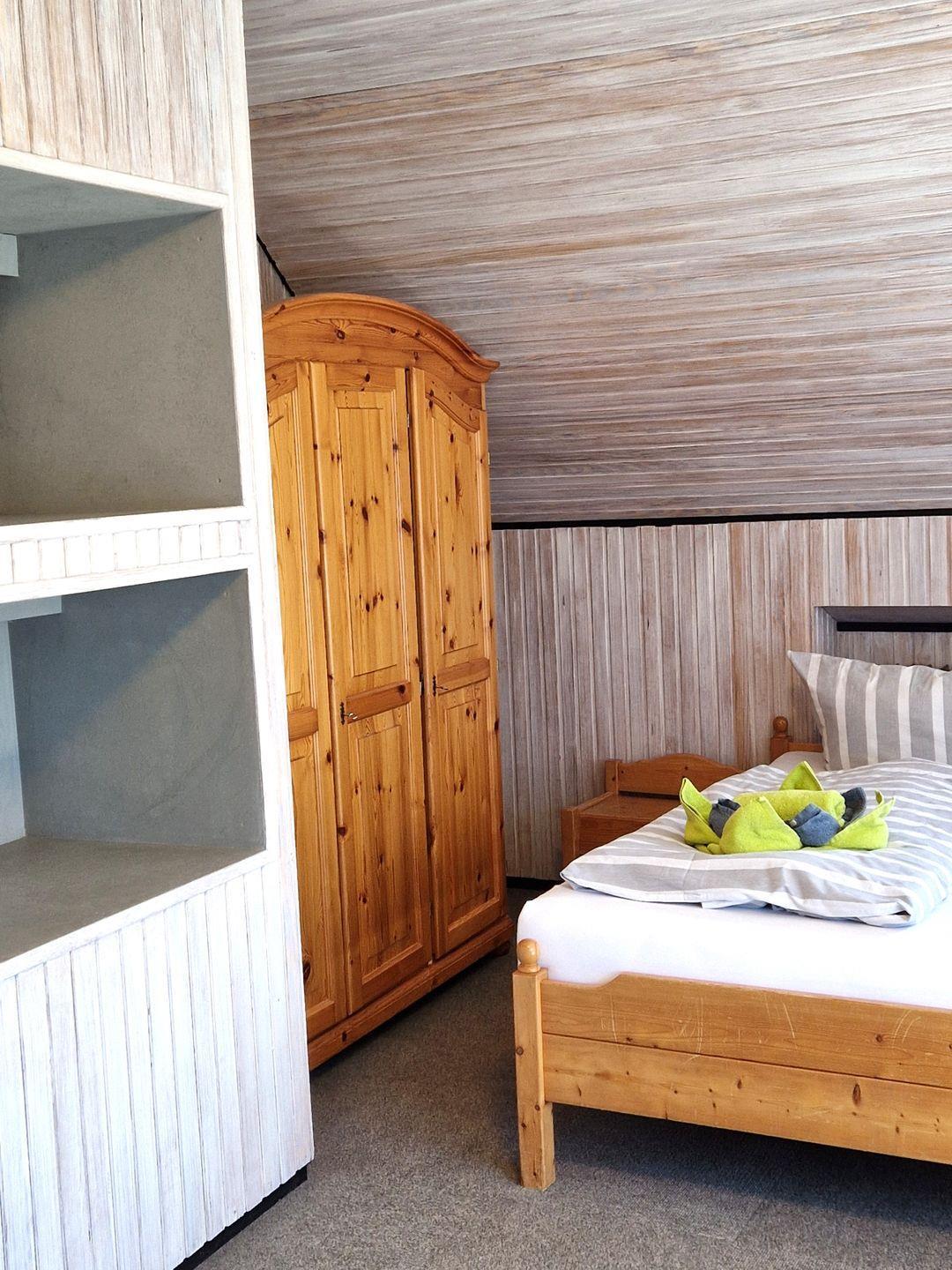 In dem großen Schlafzimmer befindet sich noch eine Lummelecke. Hier können sich die Kinder es gemütlich machen.