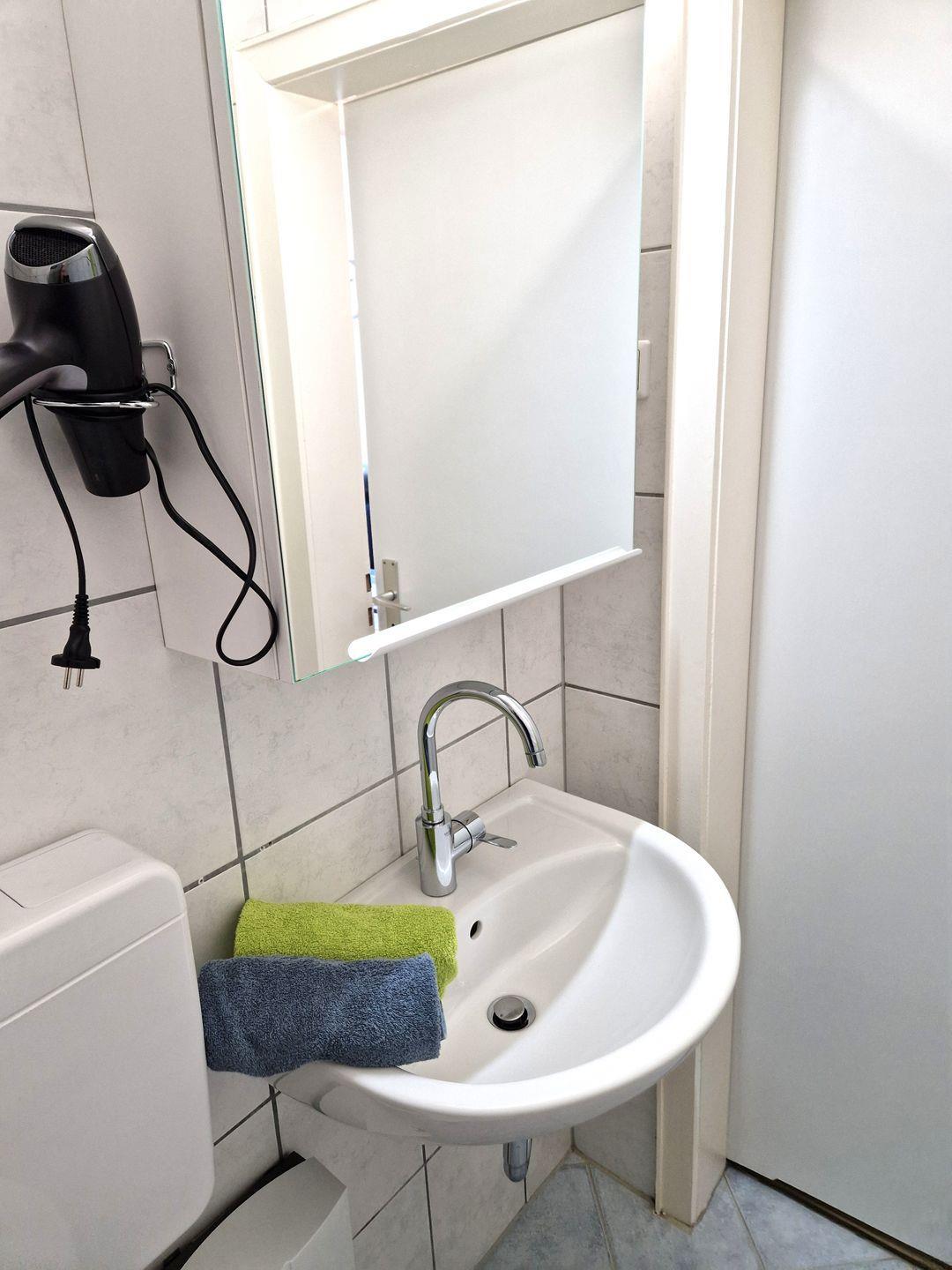 Ferner befindet sich im Bungalow eine kleines Bad mit bodengleicher Dusche