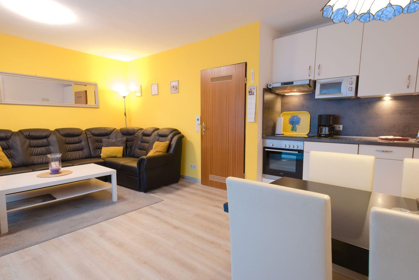 Die gemütliche Ferienwohnung für 2 Personen befindet sich in Strandnähe und bietet eine ruhige, entspannte Atmosphäre. Sie verfügt über ein separates Schlafzimmer mit Doppelbett, ein helles Wohnzimmer mit Flachbild-TV und Kabelanschluss, einen Radio-CD-Player, ausziehbarem Schlafsofa. Das 2023 renovierte Badezimmer ist mit einer ebenerdigen Dusche ausgestattet, des weiteren ein WC, Waschbecken, Spiegel, Waschmaschine und bietet Tageslicht durch ein Fenster. Die komplett ausgestattete Küchenzeile umfasst ein Cerankochfeld, Spülmaschine, einen Backofen, eine Mikrowelle und ausreichend Geschirr. Eine Terrasse mit Gartenmöbeln, Sonnenschirm und einem komplett eingezäunten Bereich lädt zum Entspannen ein. Ein Fahrradabstellraum sowie ein PKW-Einstellplatz gehören zur Wohnung. Die Ferienwohnung liegt nur