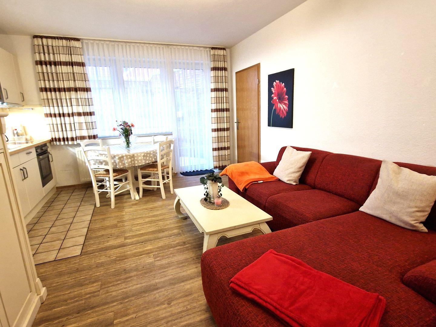Der gemütliche Wohn/Essbereich bietet genügend Platz zum Entspannen. Die angrenzenden Küchenzeile mit allem, was man braucht, runden diesen Raum ab,