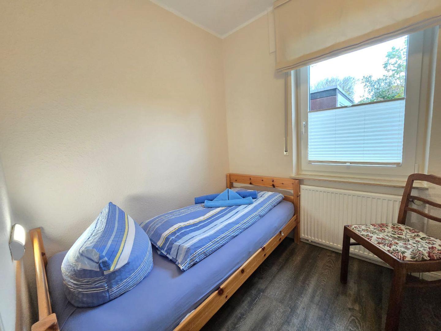 Schlafzimmer Erdgeschoss: Einzelbett, gemütlich und funktional eingerichtet.