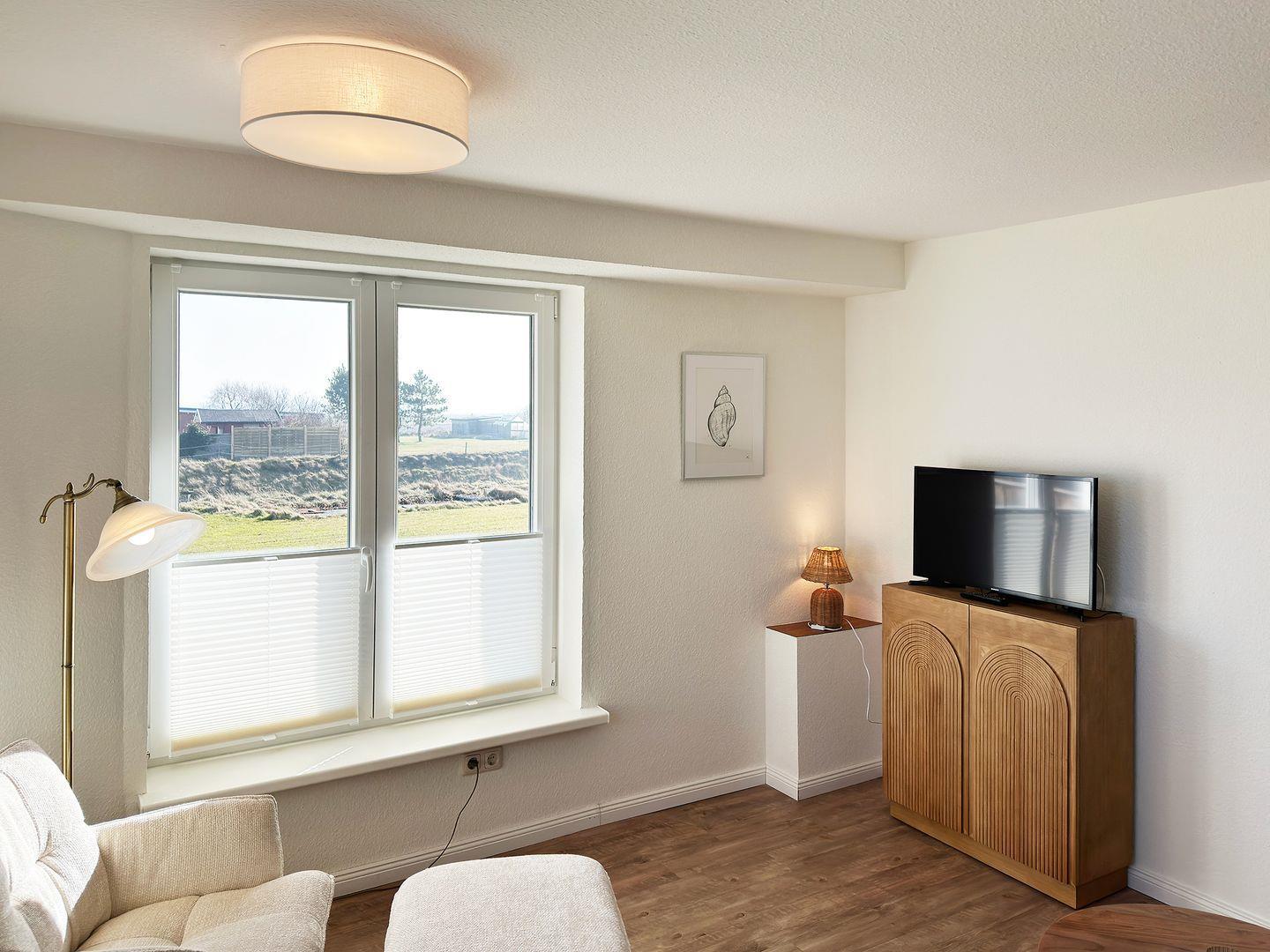Die Wohnung verfügt über 1 Wohnraum mit Sat-TV, 1 Küche, 1 Schlafzimmer, 1 Badezimmer mit Dusche und WC. Terrasse mit Tisch und 2 Stühlen sowie 1 Strandkorb im Garten (April bis Oktober). Auf dem Grundstück befindet sich ein Wäscheplatz. Bei Bedarf können Sie die Waschmaschine und den Trockner im Madelwai 7, Haus Strunluuper, nutzen.