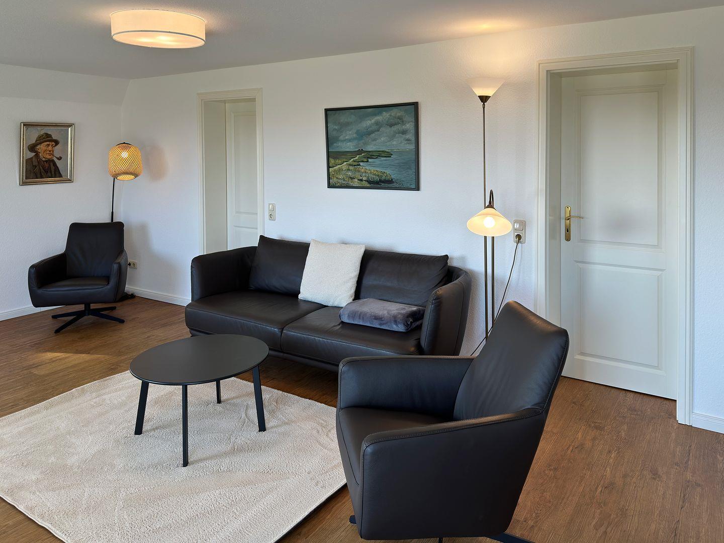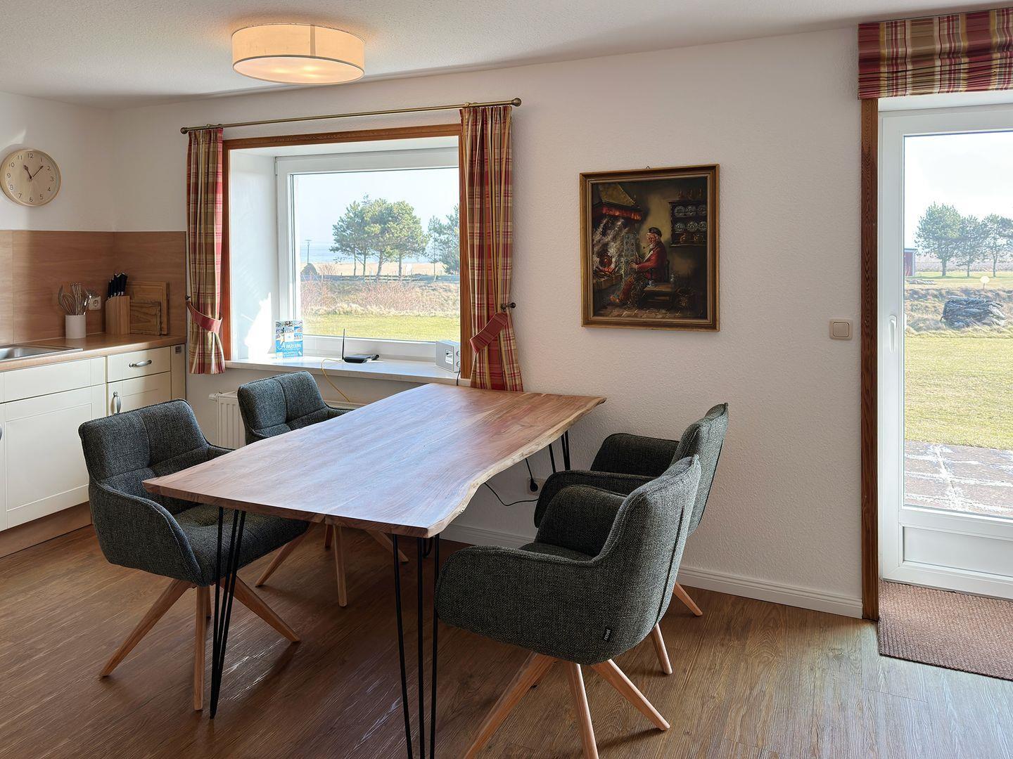 Die Wohnung verfügt über 1 großen Wohnraum mit offener Küche und Sat-TV, 2 Schlafzimmer, 1 Badezimmer mit Dusche und WC, 1 Terrasse mit Gartenmöbeln und 1 Strandkorb (April bis Oktober), 1 Terrasse mit Strandkorb (April bis Oktober). Auf dem Grundstück befindet sich ein Wäscheplatz. Bei Bedarf können Sie die Waschmaschine und den Trockner im Madelwai 7, Haus Strunluuper, nutzen.
