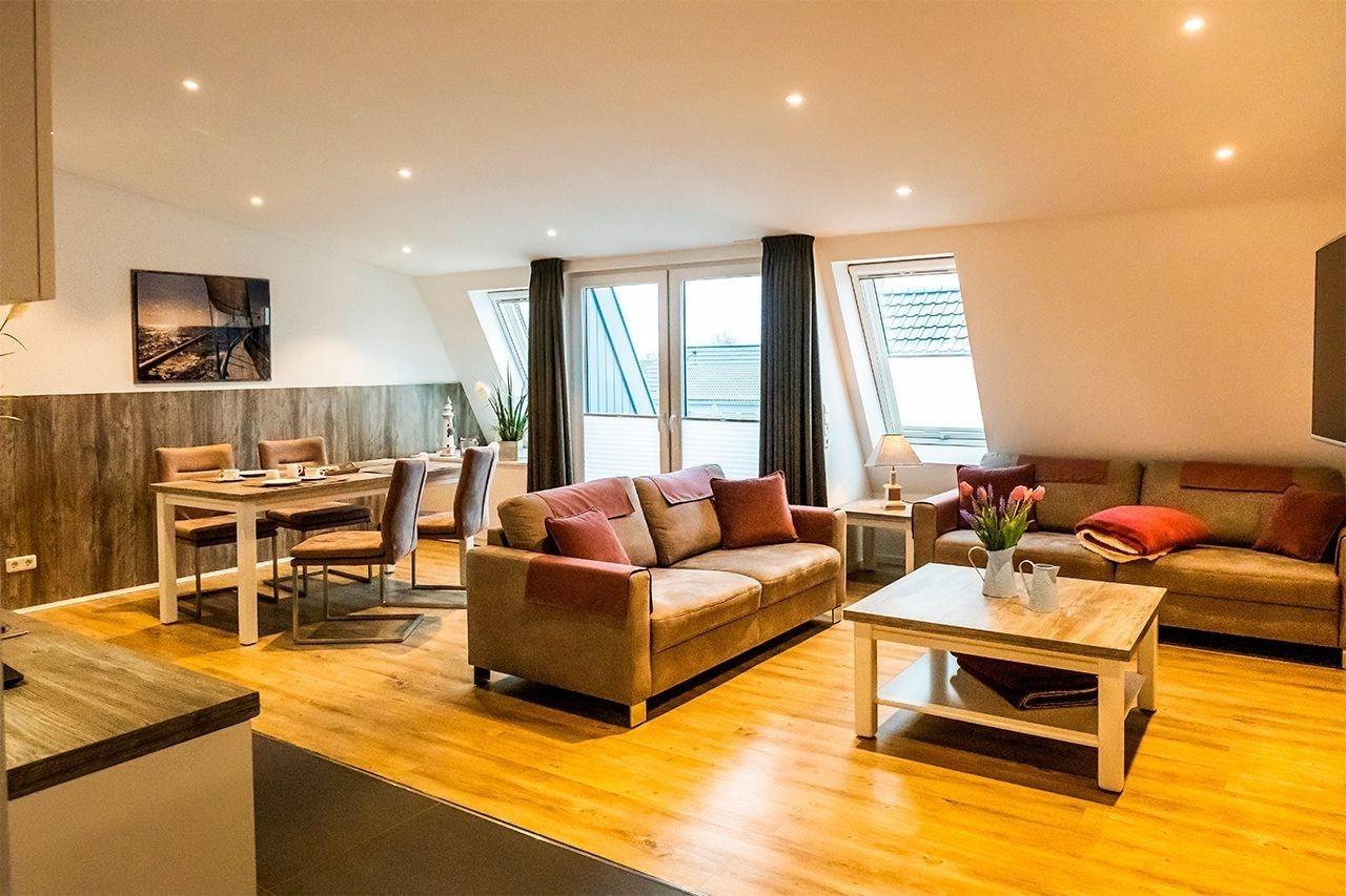 Das erst 2017 fertig gestellte Penthouse gehört ohne Zweifel zu den schönsten Ferienwohnungen in ganz Norddeich. Hier lassen sich die freien Tage komfortabel und in hervorragender Lage genießen. Sie erreichen den Strand fußläufig. Ideal für vier Gäste!
