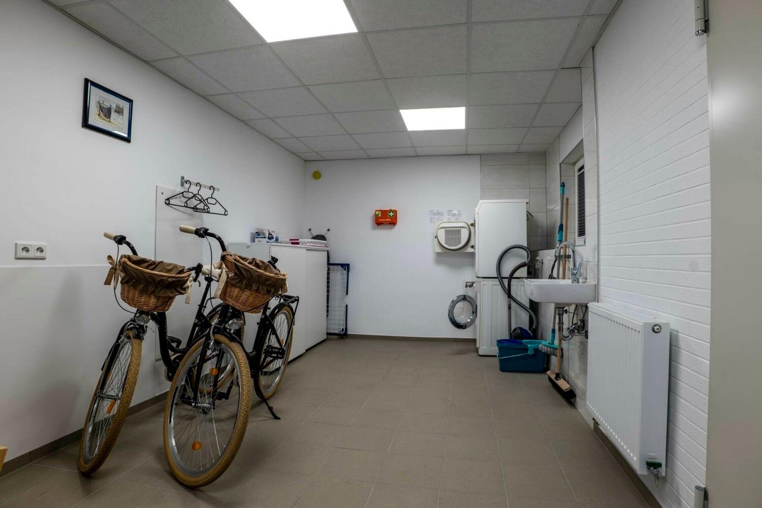 Für den Fall der Fälle gibt es eine Waschmaschine, Trockner Bügelbrett und Bügeleisen im Waschraum.