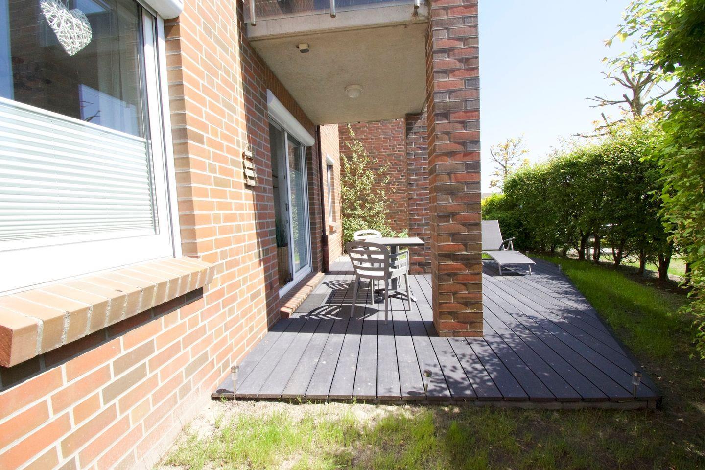 Besonderen Komfort bietet die großzügig möblierte Terrasse, die durch Markise, Sonnenliegen, Sonnenschirm, Sonnenschutz und Windschutz vielseitig nutzbar ist. Der private Garten mit Gartenmöbeln lädt zu entspannten Stunden an der frischen Nordseeluft ein. Für Ihr Fahrzeug steht Ihnen ein Privatparkplatz direkt an der Unterkunft zur Verfügung. Weiterhin ist eine E-Bike-Ladestation vorhanden.
