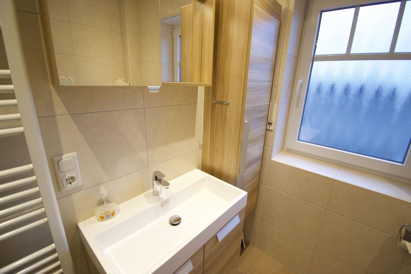 Die Wohnfläche der Wohnung beträgt 50 m² und ist ideal für zwei Personen eingerichtet. Das Schlafzimmer im Obergeschoss ist lichtdurchflutet und bietet eine angenehme Atmosphäre. Im Wohnbereich sorgen elektrische Jalousien für Komfort und Regulierung des Lichteinfalls.