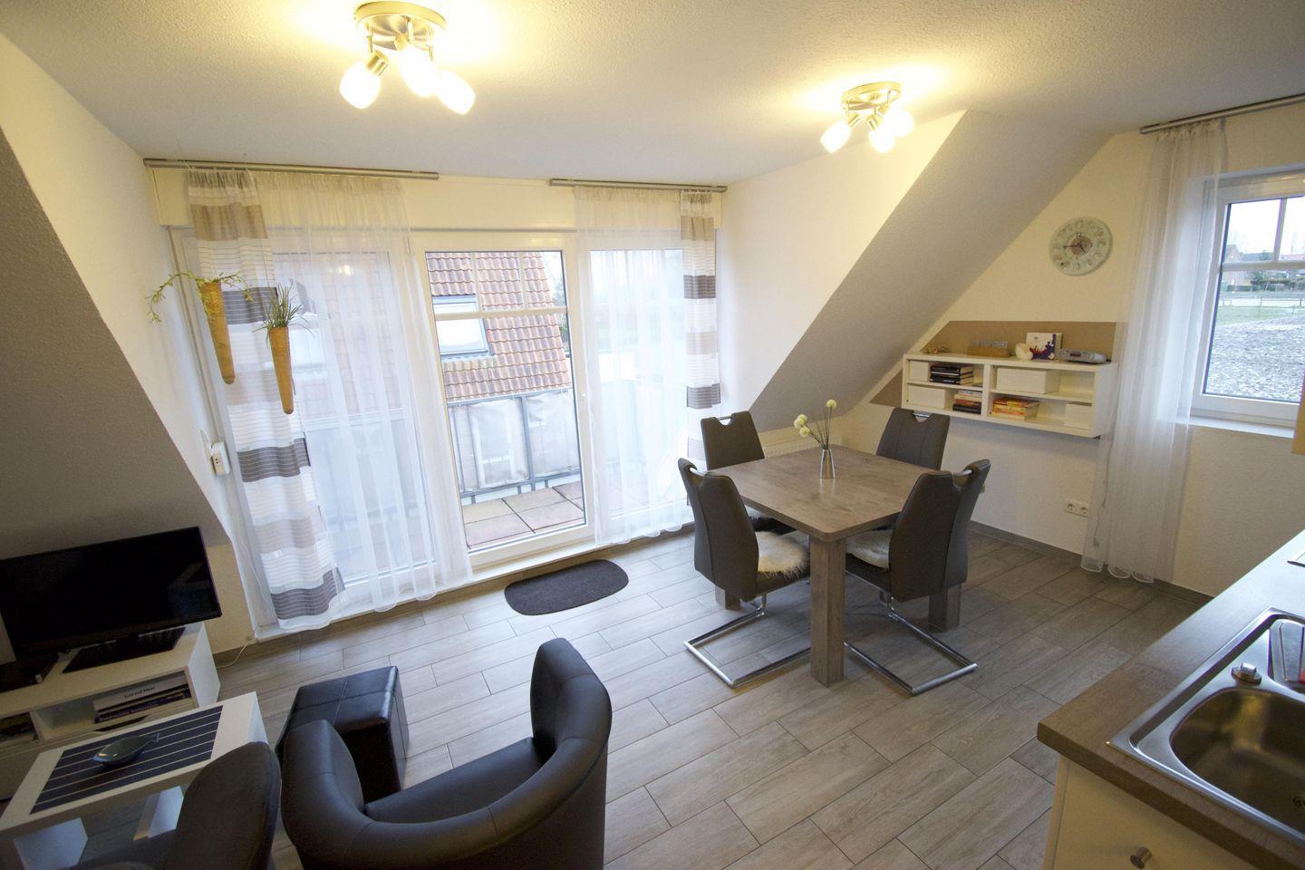 Hochwertig und liebevoll eingerichtete Ferienwohnung. Die Wohnung befindet sich im Obergeschoss und verfügt über einen Balkon in Südwestlage mit hochwertigen Gartenmöbeln.