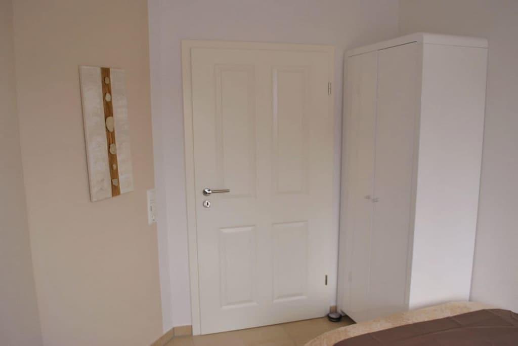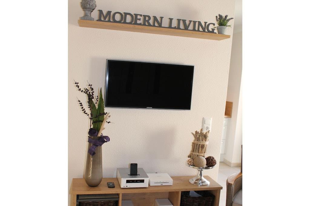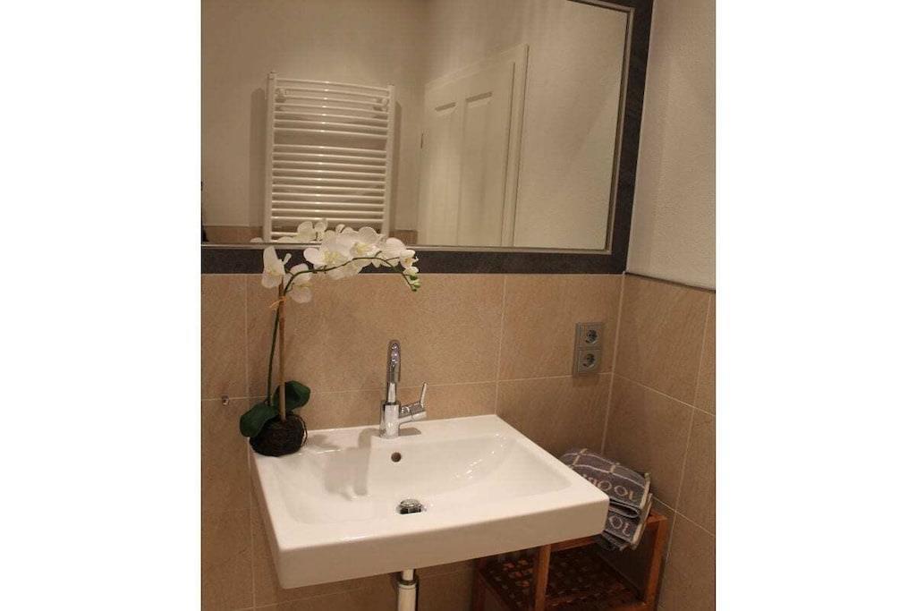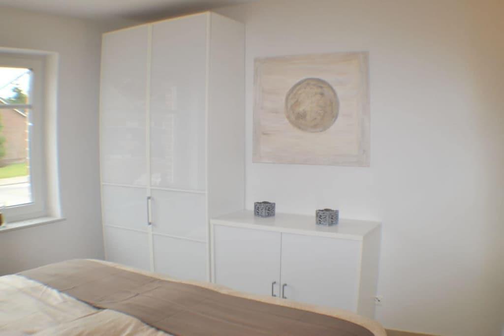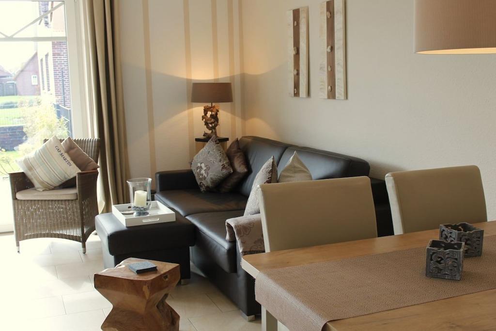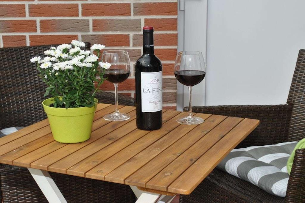 Modern vacation apartment with a contemporary feel You'll feel at home here! The natural tones of white, sand, and brown dominate the "modern country" decor. Old style elements combined with modern furnishings give the apartment an exclusive flair. The cozy living area invites you to linger with its brown leather couch (3-seater), flat-screen TV, and Blu-ray player. Experience sleeping comfort like in a luxury hotel; a box spring bed guarantees restful sleep. Another highlight of the bed is its comfortable bed height and the electrically adjustable head and footboard. In the second bedroom, a cozy single bed and a lovely reading nook offer a great place to retreat. The apartment is designed for 2 to 3 small or large guests and a baby and is fully equipped with high-quality tiles and underfloor heating in all rooms. All windows have electric shutters. A modern bathroom with a large walk-in shower completes the feel-good concept. Especially important was the light-filled design. A large sunny terrace with comfortable garden furniture, a parasol, and a deckchair invites you to relax. And there's also a large beach chair on our sun terrace! The apartment is furnished with great attention to detail. A parking space and an outdoor storage room are also included. As this is an allergy-friendly vacation rental, pets and smoking are not allowed. The garden is fully fenced and has its own storage room, for example, for bicycles. By the Sea is located in a cul-de-sac and has a large south-facing garden. The beach and OceanWave, the spa gardens, and the seal sanctuary are just a few minutes' walk away via the beach paddock. Many inclusive services such as Nespresso capsules and tea, etc., round out this wonderful vacation package.