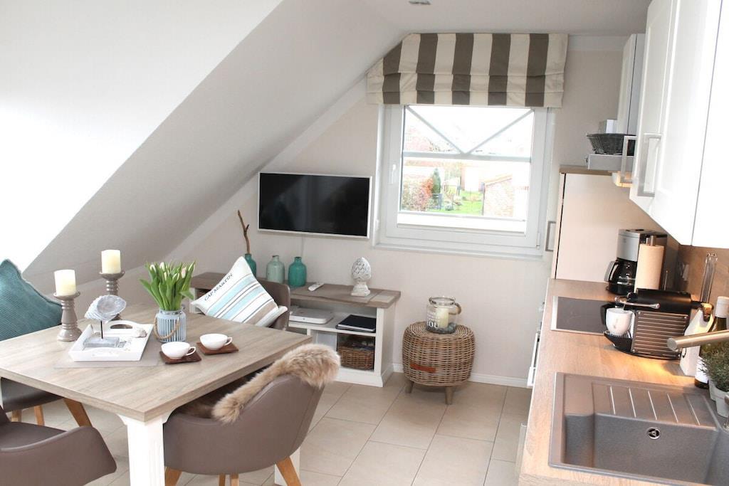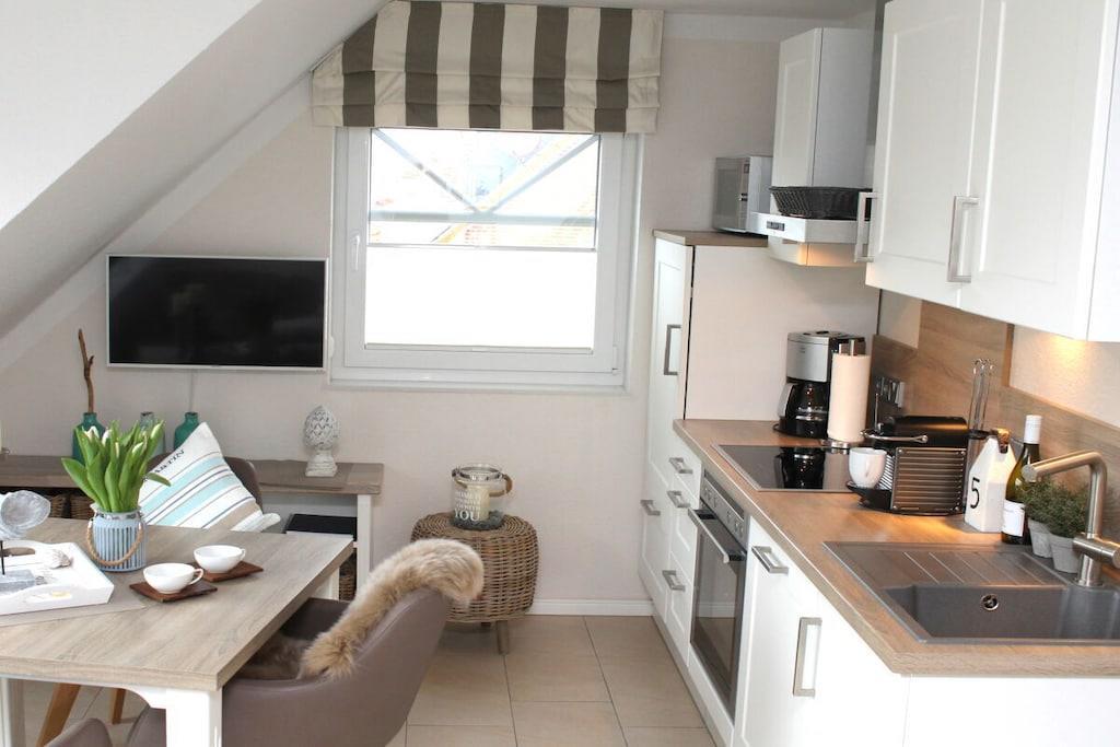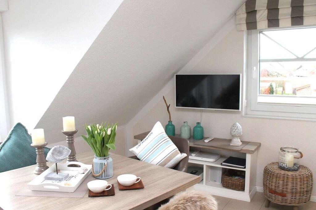 Beautiful, newly built apartment with special amenities, a private entrance, and 2 bedrooms for up to 4 people. Just a few minutes' walk from Ocean Wave and the sea. Restaurants and shops are within walking distance. The approximately 62m², light-filled apartment with a south-facing balcony invites you to relax with its special amenities. Great emphasis was placed on high-quality, allergy-friendly materials in the furnishings. The entire living area is equipped with underfloor heating and electric shutters. A modern, daylight-filled bathroom features a 1.00m x 0.90m walk-in shower. Free Wi-Fi, satellite TV. Visit our private website for more information.