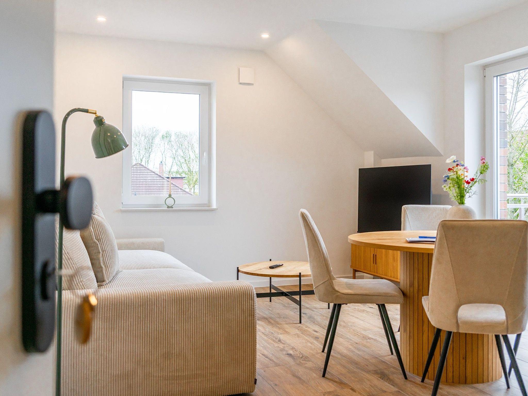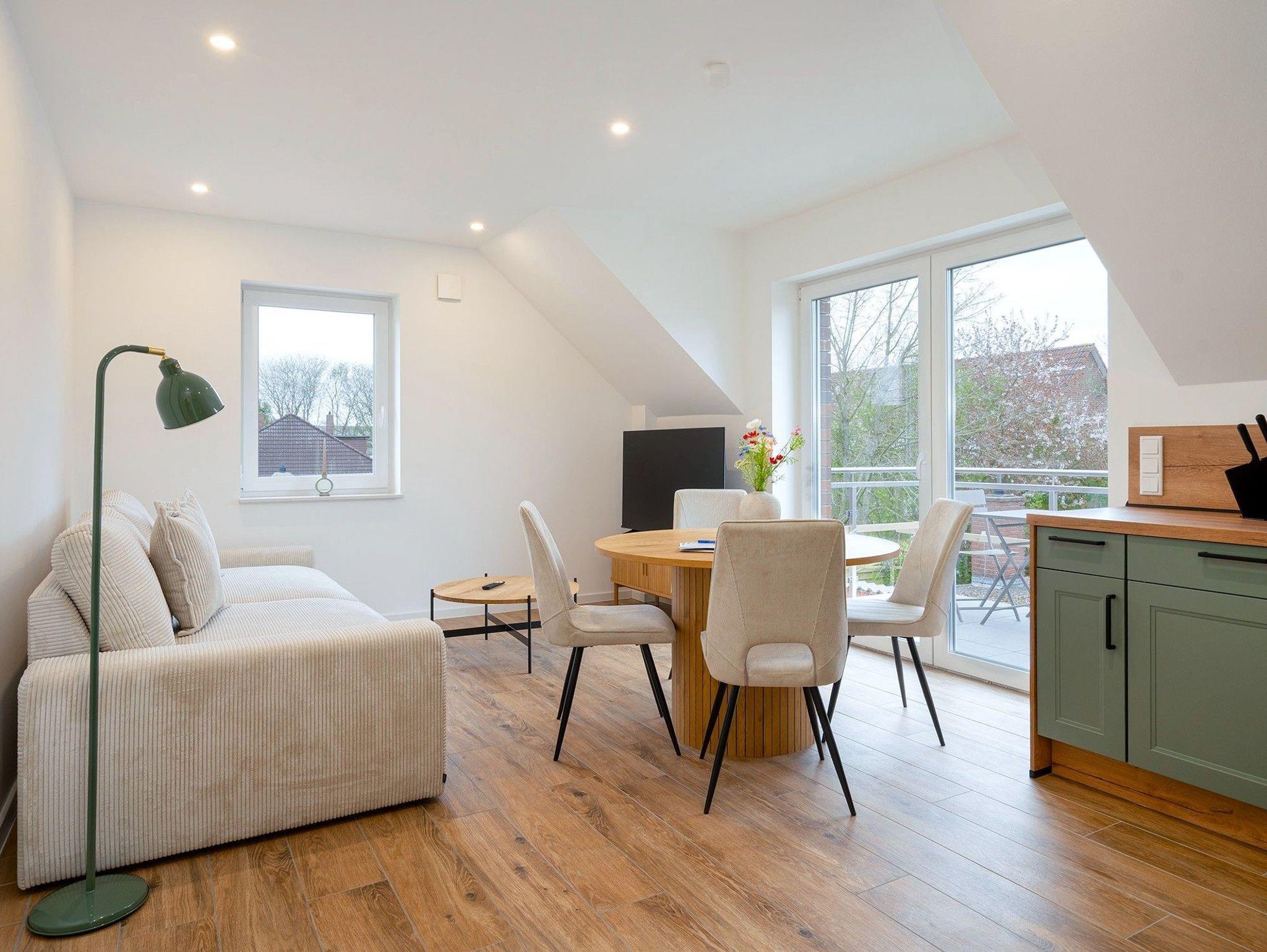Die Ferienwohnung WATT'N Traum II im beliebten Küstenort Norddeich bietet eine ideale Unterkunft für entspannte Tage an der Nordsee. Sie liegt im Obergeschoss und erstreckt sich über 55qm, was ihr eine gemütliche Atmosphäre verleiht. Sie verfügt über zwei geschmackvoll eingerichtete Schlafzimmern und ist somit perfekt für Familien oder Paare, die gemeinsam Erholung suchen. Der großzügige Wohnbereich bietet neben einer Sitzecke eine voll ausgestattete und hochwertige Einbauküche. Ein besonderes Highlight der Wohnung ist das Tageslichtbad, was über eine Infrarotkabine verfügt, die nach langen Spaziergängen Erholung bietet. Auch der Balkon verspricht erholsame Stunden im Freien. Ein eigener PKW-Stellplatz steht Ihnen auch zur Verfügung. Durch die Lage unweit der beliebten Seehundaufzuchtstation erreicht man nach einem kurzen Spaziergang den Deich und Sandstrand.