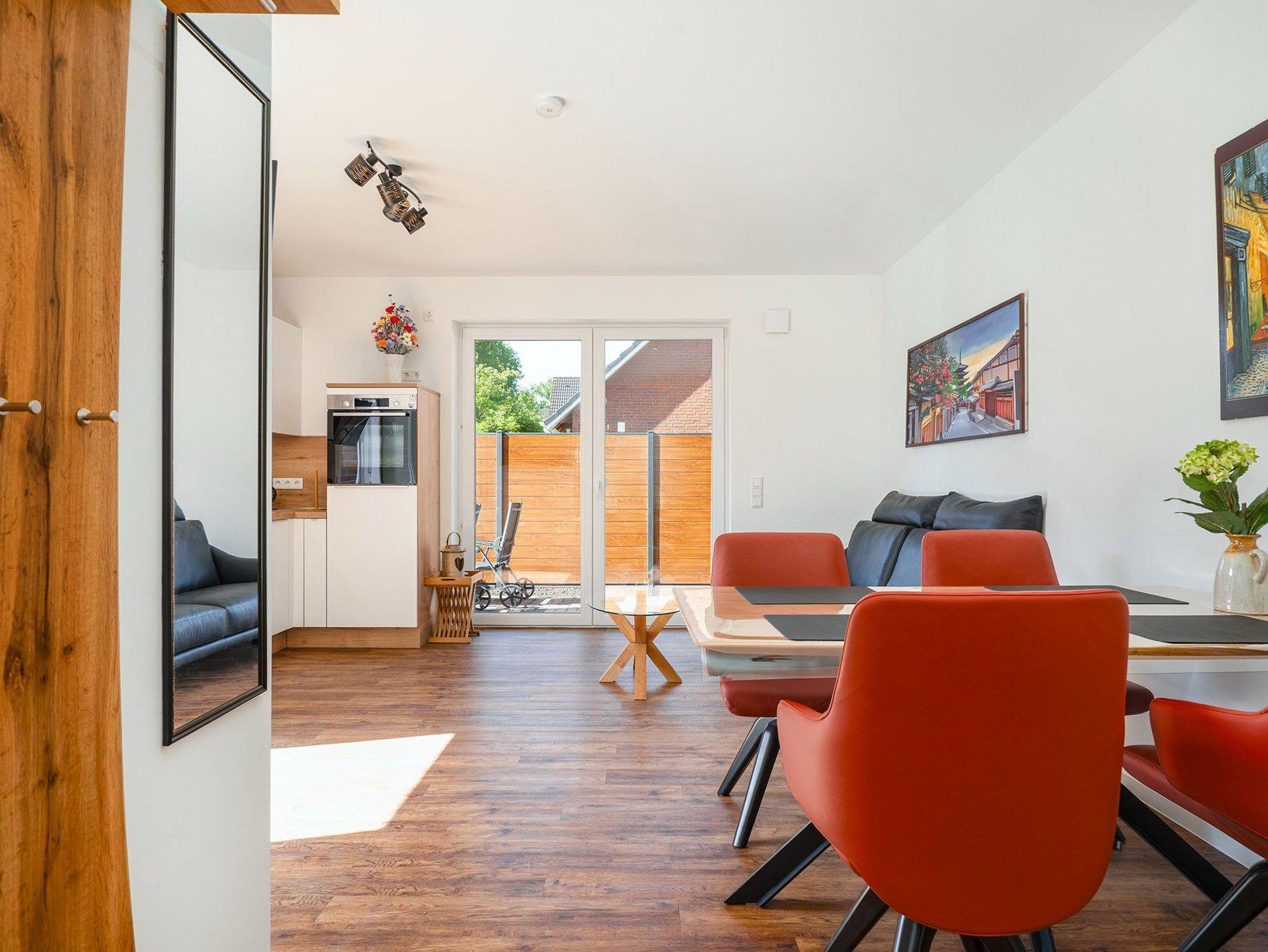 Die gemütliche Ferienwohnung DeichRelax befindet sich im idyllischen Seegatweg in Norddeich nur wenige Minuten vom Deich und der Nordsee entfernt. Auf 45qm macht sie ihrem Namen alle Ehre, denn sie bietet den idealen Rückzugsort für Paare oder Alleinreisende, die Erholung und frische Meeresluft suchen. Neben einem hellen und hochwertig eingerichteten Wohnbereich mit Sitzecke und voll ausgestatteter Küchenzeile verfügt die Erdgeschoss Wohnung über ein gemütliches Schlafzimmer mit komfortablem Doppelbett und ein modernes Badezimmer mit ebenerdiger Dusche. Besonders hervorzuheben ist die vorhandene Infrarotkabine, die zum Entspannen nach ereignisreichen Tagen einlädt. Weiterhin gehört ein Garten mit großer Terrasse zur Wohnung, perfekt für sonnige Frühstücke im Freien oder ruhige Abende. Selbstverständlich steht Ihnen auch ein eigener PKW-Stellplatz direkt an der Wohnung zur Verfügung ebenso wie ein Abstellraum für Fahrräder, in dem Sie Ihre E-Bikes laden können.