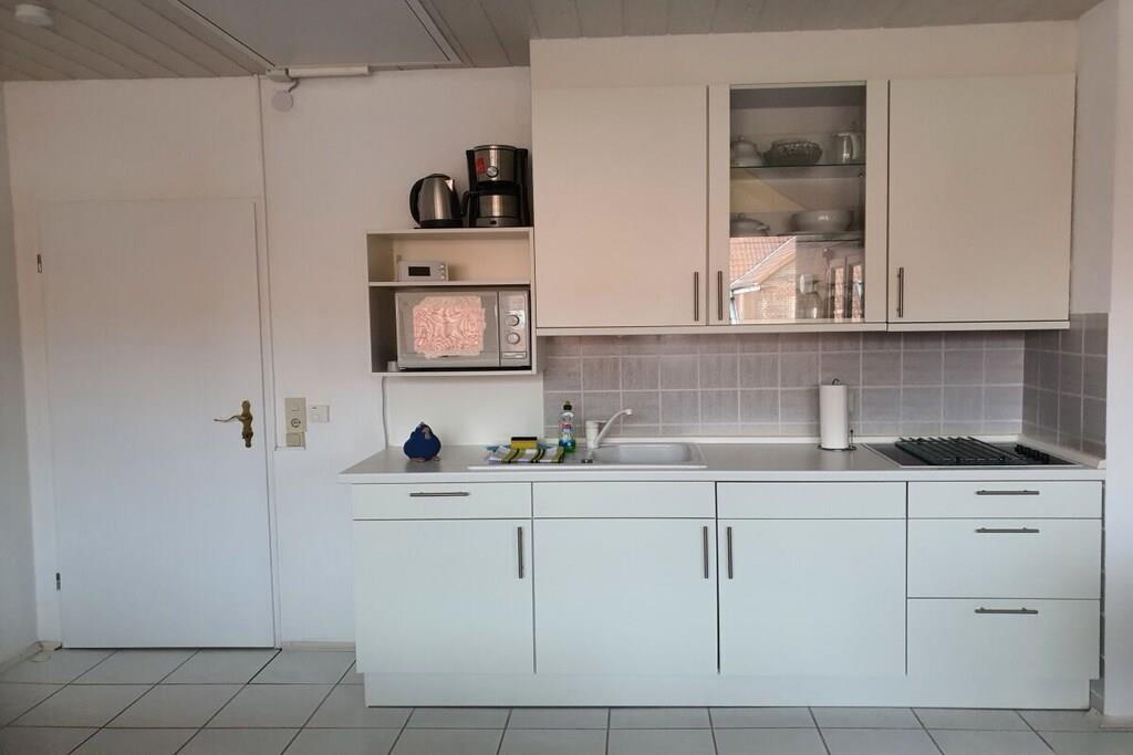 Ihre Ferienwohnung ist ein stilvoll eingerichtetes Einraumapparetment mit allem, was das Herz begehrt. Neben dem Badezimmer mit Dusche, finden Sie in dem großzügig geschnittenen Appartement eine moderne Küchenzeile mit Ceranfeld, Mikrowelle, Wasserkocher, Kaffemaschine und ausreichend Geschirr für kleine und größere Mahlzeiten vor. Die nagelneue Couch ist mit einem Handgriff zu einem vollwertigen Bett umzufunktionieren. Dadurch ist der für einen erholsamen Urlaub notwendige Schlafkomfort in dem dann 1,60m mal 2,00m großen Bett mit Lattenrost und Matratze bestens gegeben. Nach dem Aufstehen kann die Bettwäsche bequem in der zum Sofa gehörenden Truhe verstaut werden. Ein Esstisch mit vier Stühlen, der Flatscreen und natürlich ein Balkon mit Sicht auf den Deich runden die Wohnung ab.