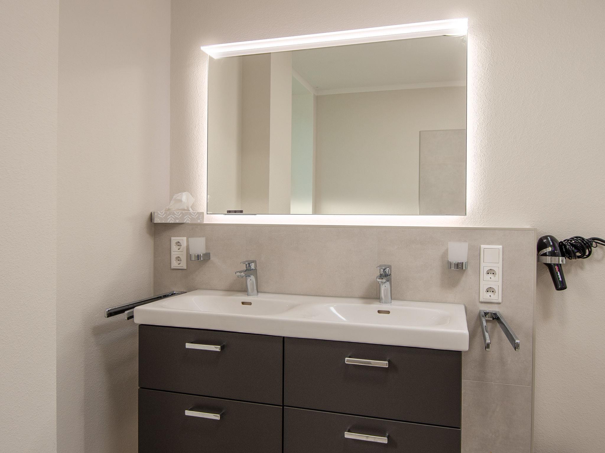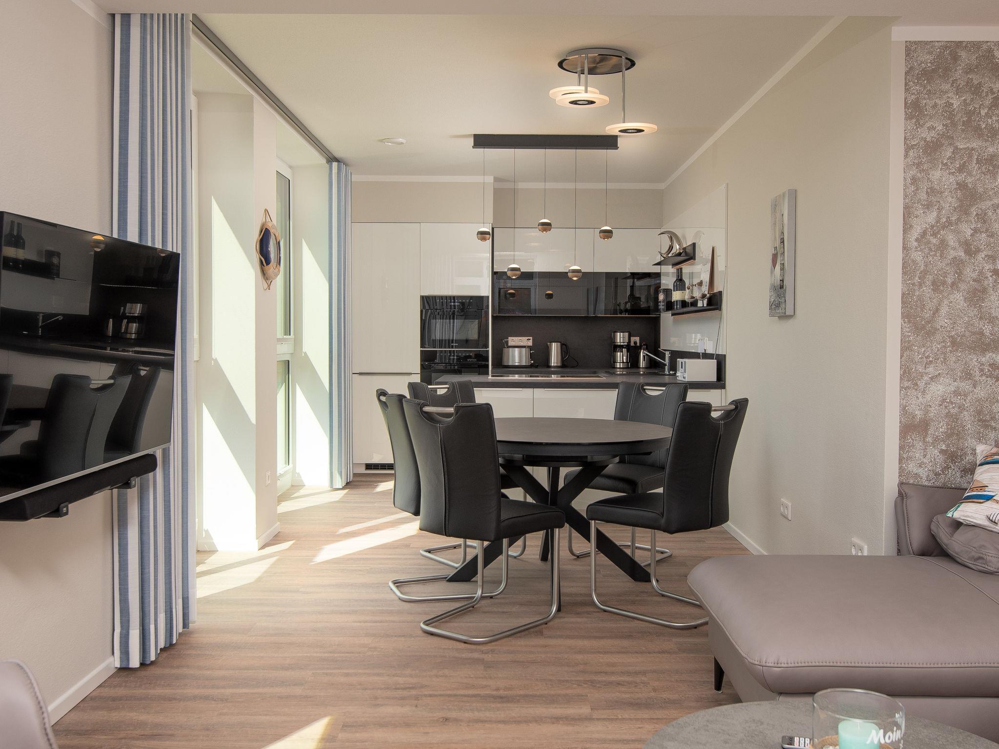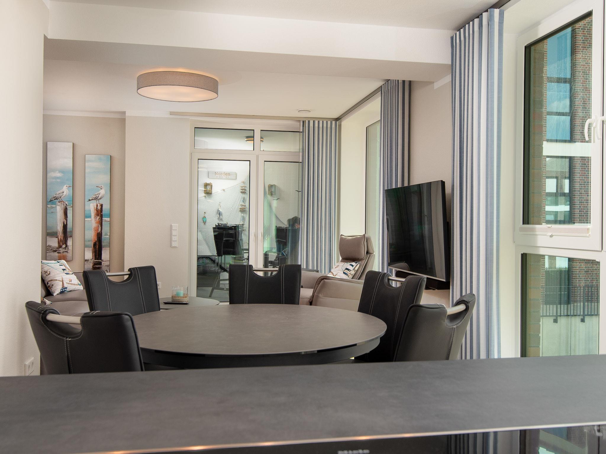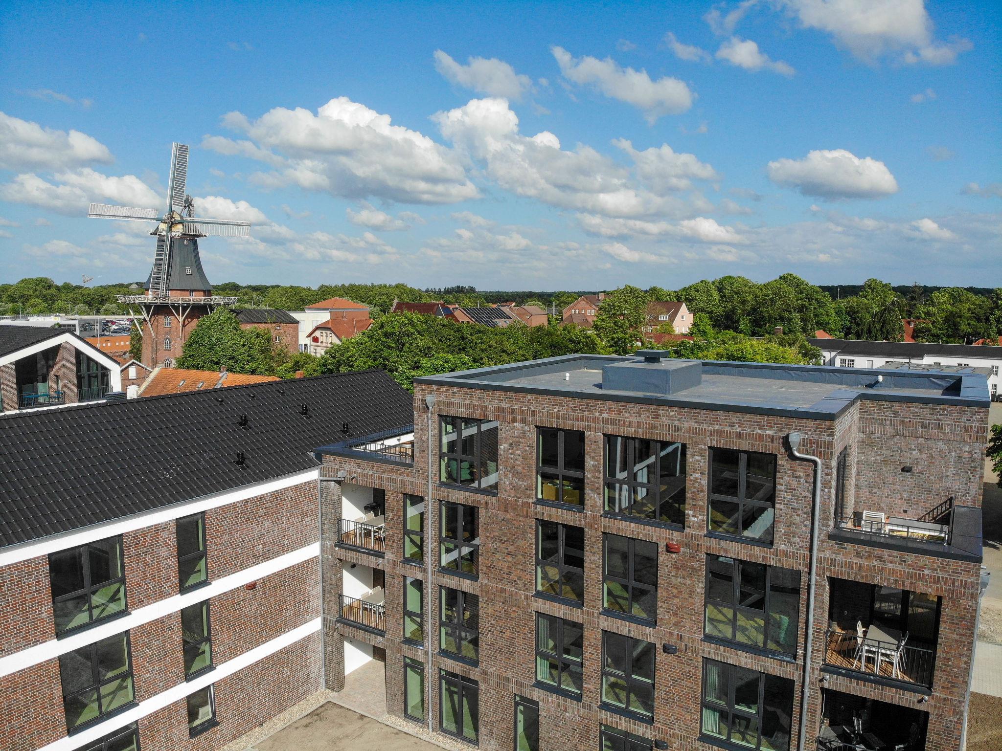 Modern, comfortable apartment house "Eisvogelnest am Norder Tief", built in 2024. In the centre of Norden, excellent location: right in the centre but still quiet, 6 km from the sea, 6 km from the beach. In the house: lift, storage room for bicycles, central heating system. Parking at the house. Supermarket, shopping centre, restaurant, bakery, café, pedestrian zone 200 m, bus stop "ZOB Norden" 500 m, railway station "Norden Bahnhof" 500 m, sandy beach "Norddeich" 6 km, outdoor swimming pool 10 km, indoor swimming pool 5 km. Golf course (18 hole) 4 km, surf school 6 km, minigolf 5 km, sports centre 1.5 km. The bicycle cellar has a charging station for e-bikes. It is a KfW efficiency house standard 40 with geothermal energy.