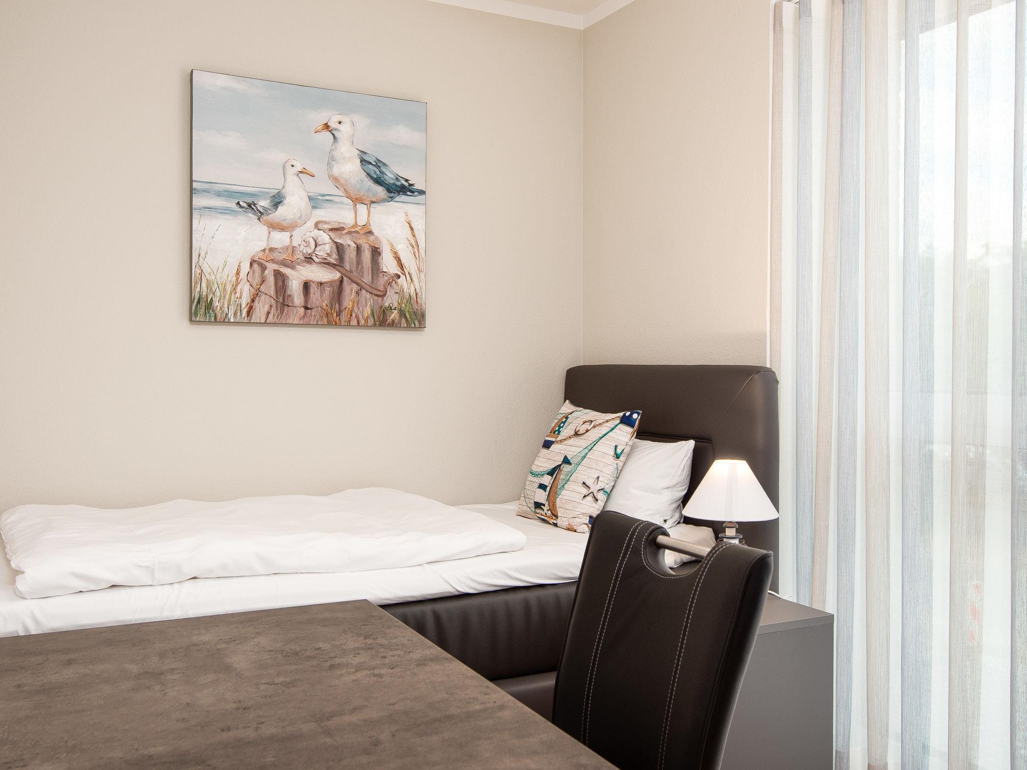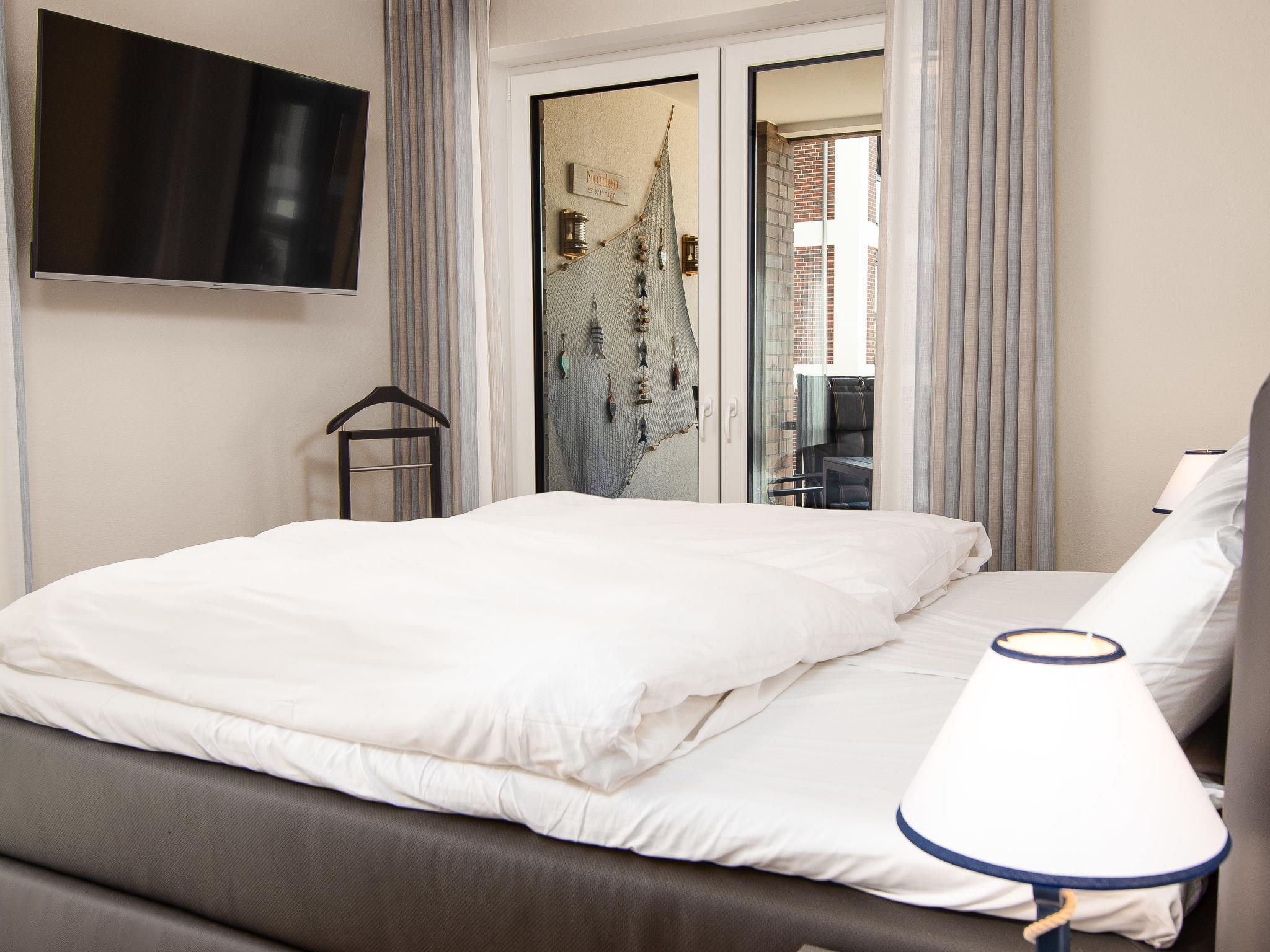 4-room apartment 96 m2 on 1st floor. Very comfortable and luxurious furnishings: living/dining room with cable TV (flat screen), hi-fi system. Exit to the balcony. 2 double bedrooms, each room with cable TV (flat screen), electric shutters. 1 room with 1 bed, cable TV and electric shutters. Open kitchen (oven, dishwasher, 4 induction hot plates, toaster, kettle, microwave, freezer, electric coffee machine). 2 showers/WC. Underfloor heating. Balcony. Balcony furniture, box-room. Marvellous view of the canal. Facilities: washing machine, dryer, iron, children's high chair, hair dryer, baby changing unit. Internet (WiFi). Please note: non-smokers only. Smoke alarm. The balcony with a view of the Norder Tief has an awning.