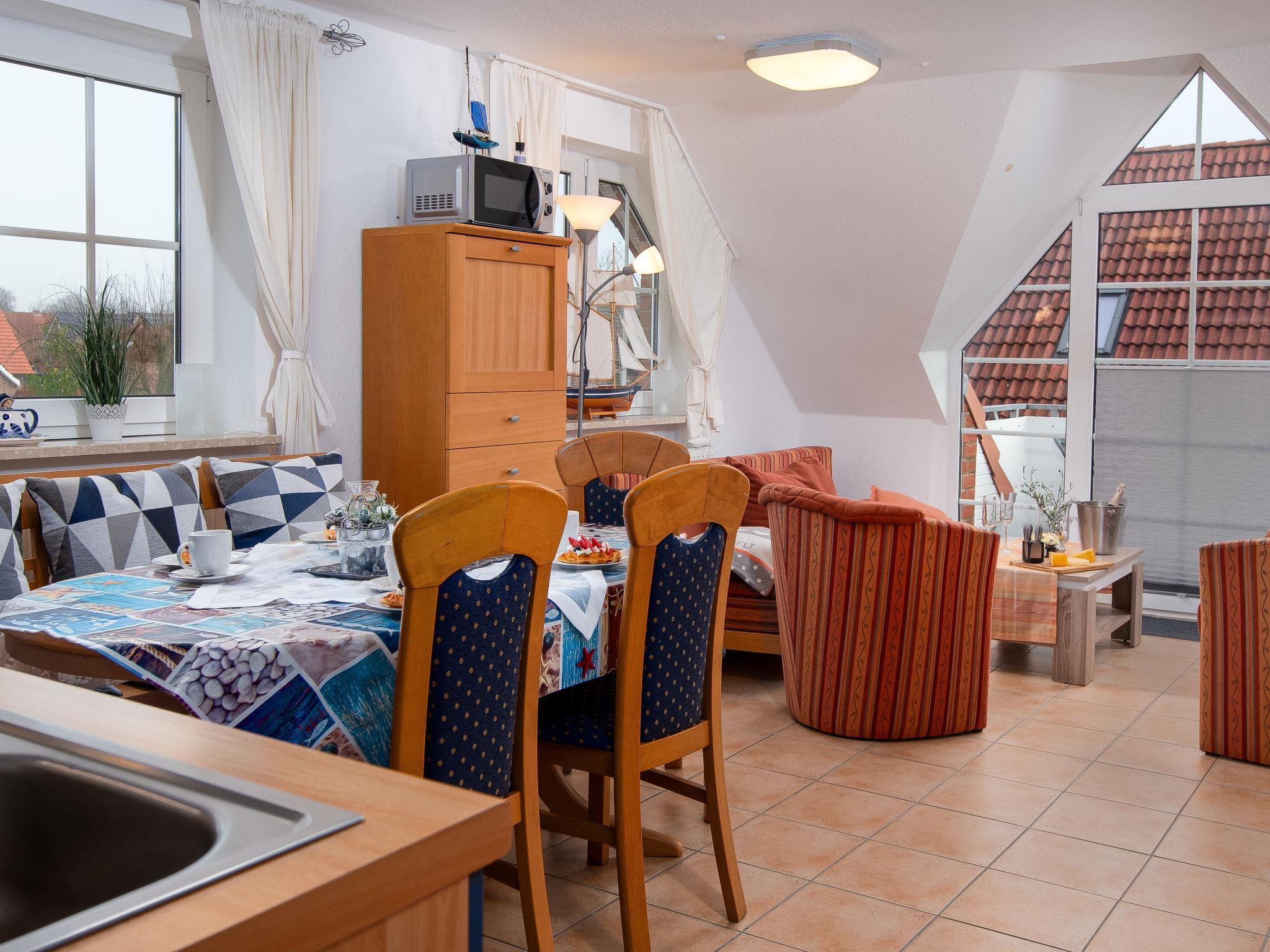 "Wattwurm", 3-room apartment on 1st floor. Object suitable for 2 adults + 2 children. Tasteful furnishings: living/dining room with cable TV (flat screen), hi-fi system and DVD. Exit to the balcony. 1 room with 2 beds. 1 room with 1 double bed. Kitchenette (oven, 4 ceramic glass hob hotplates, toaster, kettle, microwave, electric coffee machine). Shower/WC. Balcony. Balcony furniture. Facilities: washing machine, children's high chair, baby cot for up to 2 year olds (extra), hair dryer. Internet (WiFi, free). Please note: maximum 1 pet/ dog allowed. Smoke alarm.