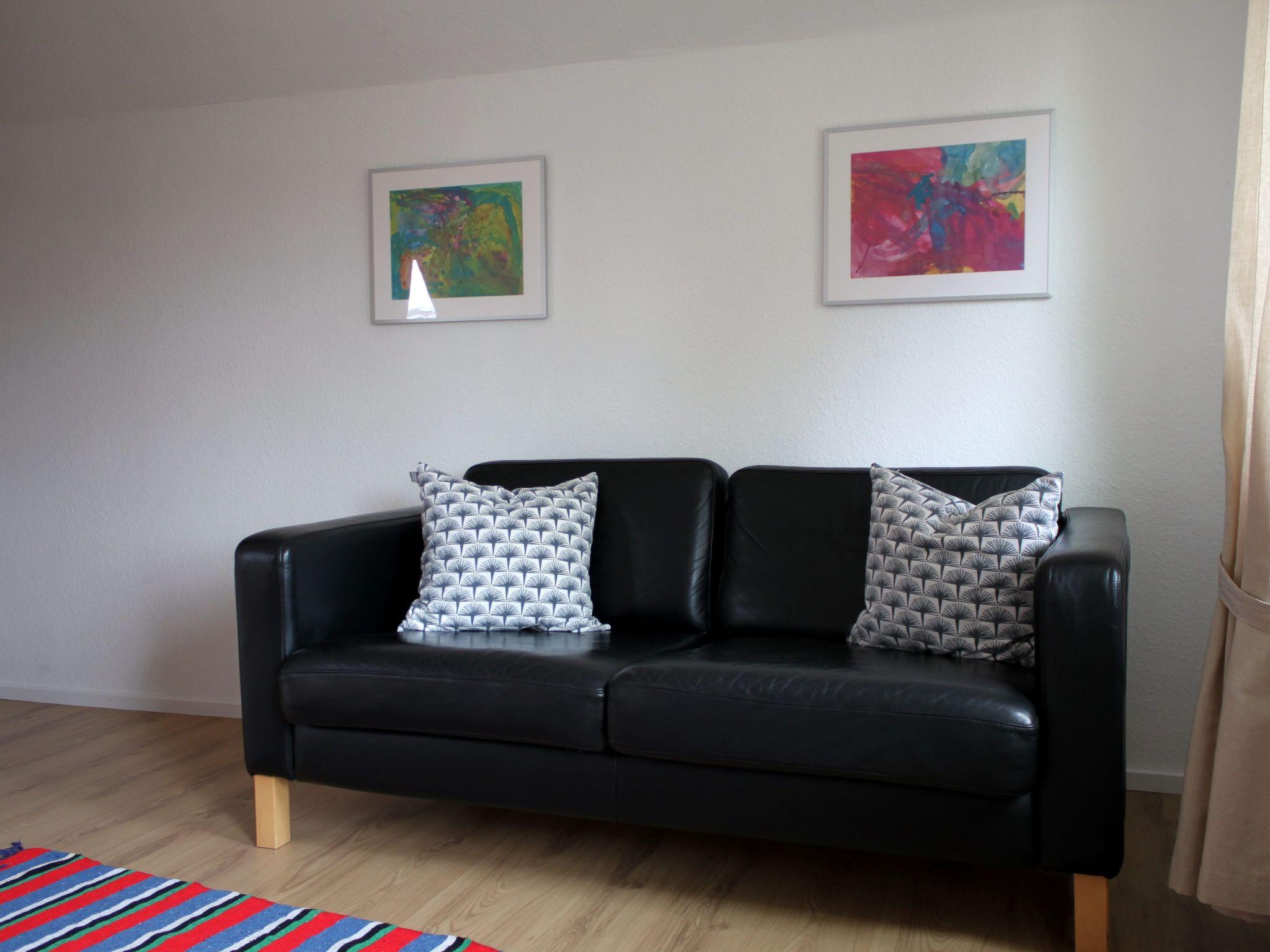 There are two bedrooms on the upper floor, one of which is equipped with a CD player and TV. One bedroom has a 180x200cm bed, the other room has a 140x200cm bed. Wardrobes and shelves provide ample storage space.