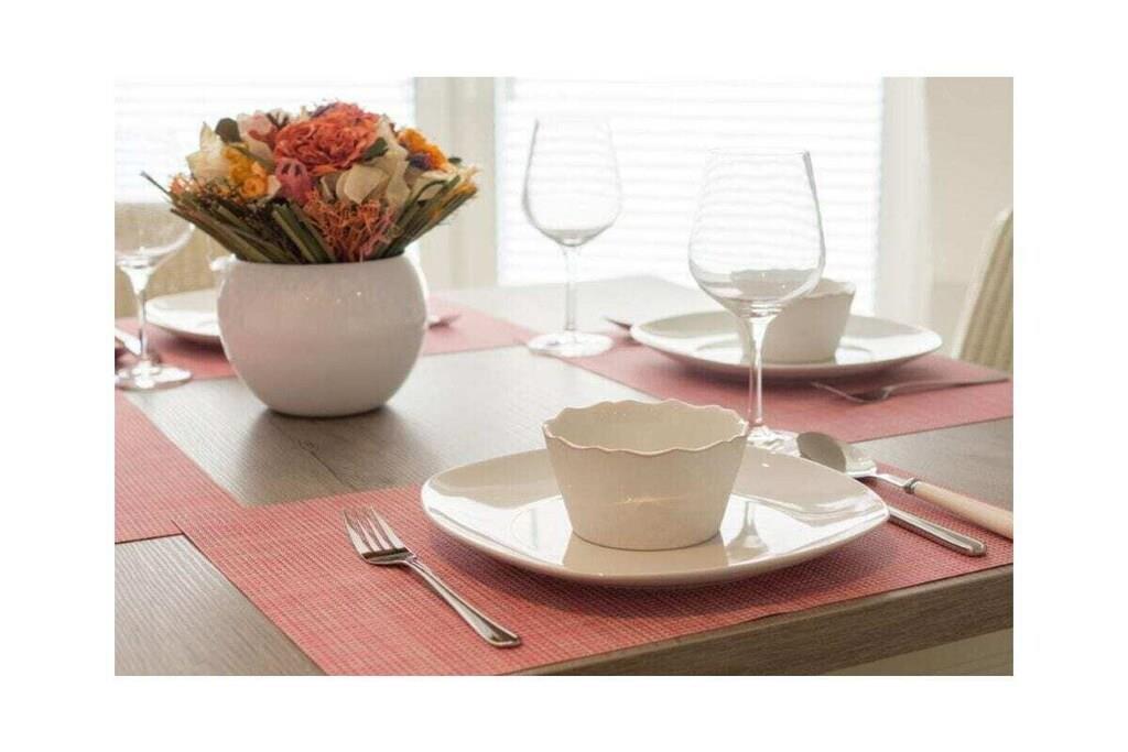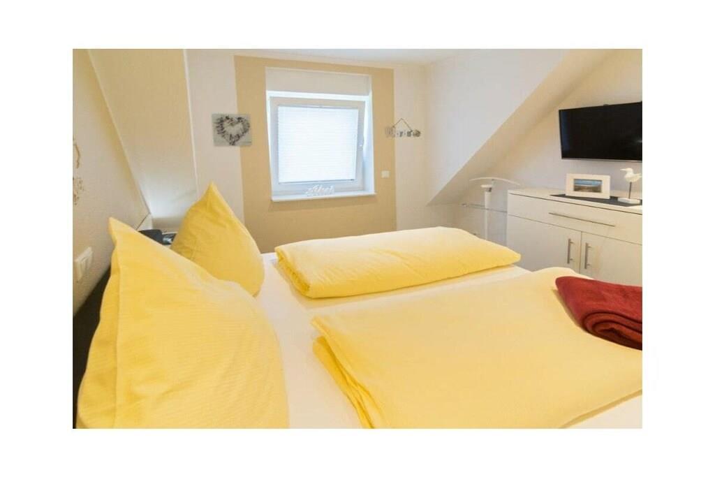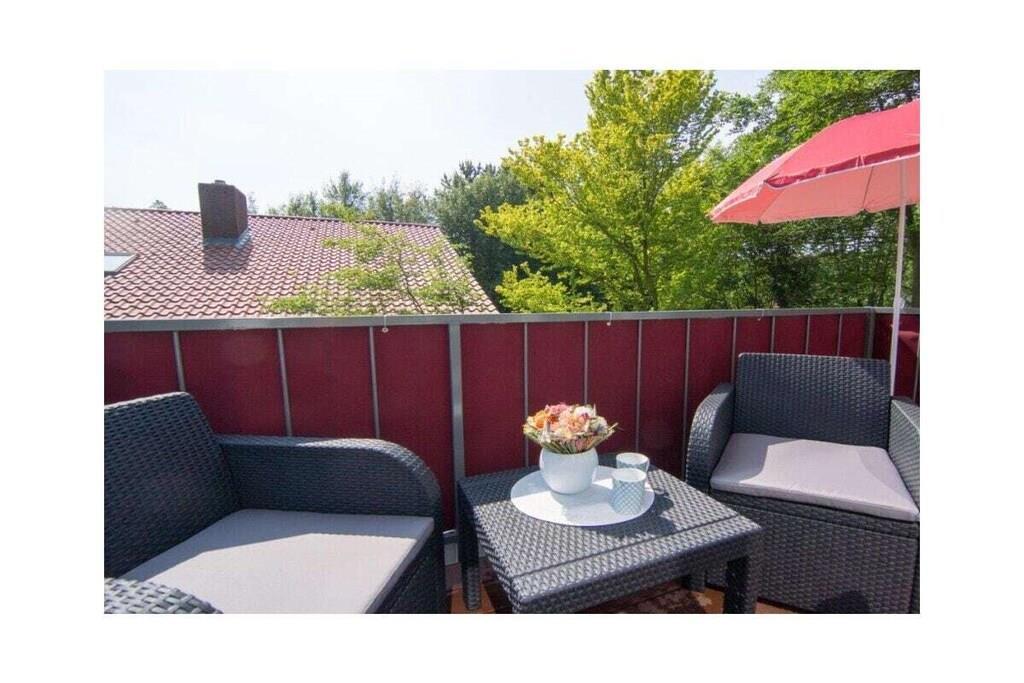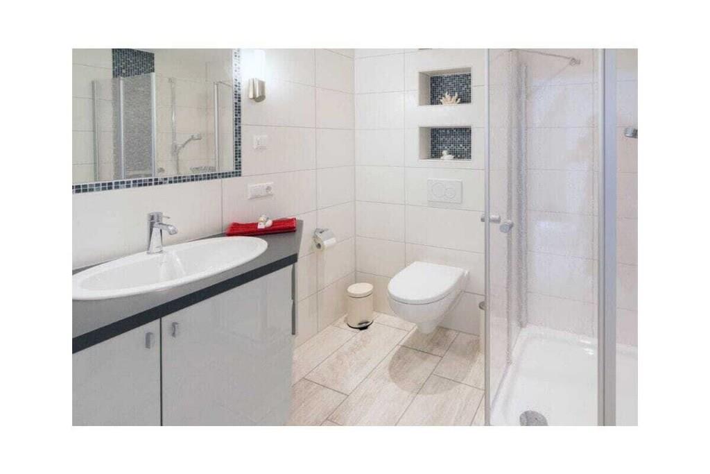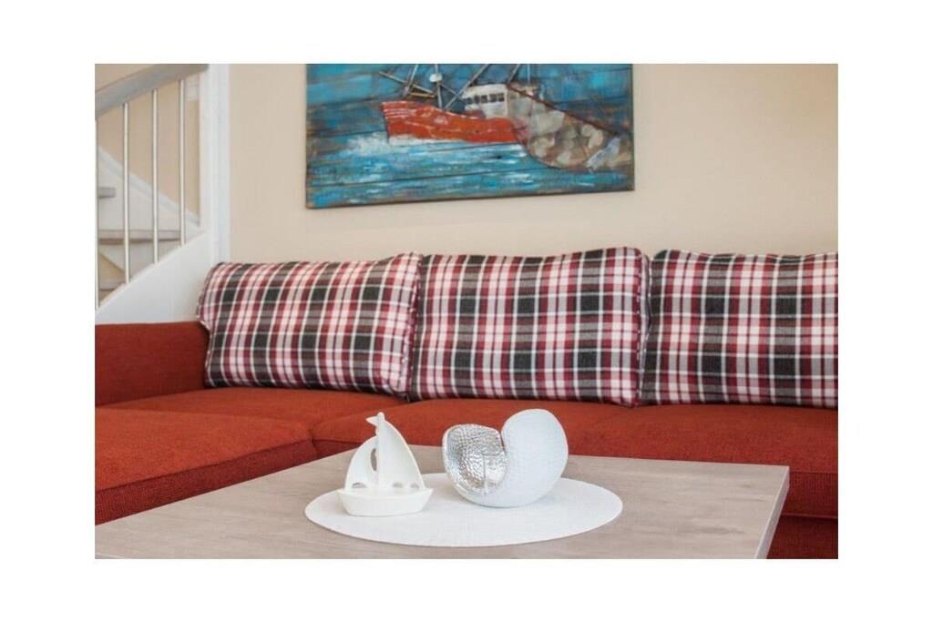 Holiday apartment Ankerplatz D7 Ankerplatz D7 is a holiday apartment for guests who love comfort and class even on holiday. Only completed in 2016, this property is particularly modern and luxurious. The interior was chosen with care and good taste. The maritime charm is noticeable everywhere, but is completely subtle. With the double room including a comfortable electrically adjustable box spring bed and the youth room with a single bed, the holiday apartment Ankerplatz D7 is ideal for 2 people with a child aged 5 and over. You can cook to your heart's content in the large, cozy kitchen. Amenities such as an oven with ceramic hob, a refrigerator with freezer compartment, a microwave, a dishwasher, a Senseo coffee machine, a filter coffee machine, a toaster, an egg cooker, a kettle and a blender are available. Full entertainment awaits guests in the cozy living area. Flat-screen TV with Internet functions such as Netflix, U-Tube and media library, plus a Blu-Ray DVD player and a CD player leave nothing to be desired. All shutters can be controlled electronically. You can also electronically adjust the underfloor heating to the desired temperature. The holiday apartment also has a storage room in which you can use a washing machine free of charge, a vacuum cleaner, dustpan & broom, clothes rack with clothespins, ironing board and iron. There is a storage room outside where you can safely park your bicycles. For a carefree start to your vacation, book our linen package. This consists of bed linen, towels, shower mats, tea towels and a service set (toilet paper, dishwasher tablets, garbage bags, dish brush, cleaning cloths and other small helpers) for a carefree start to your vacation.