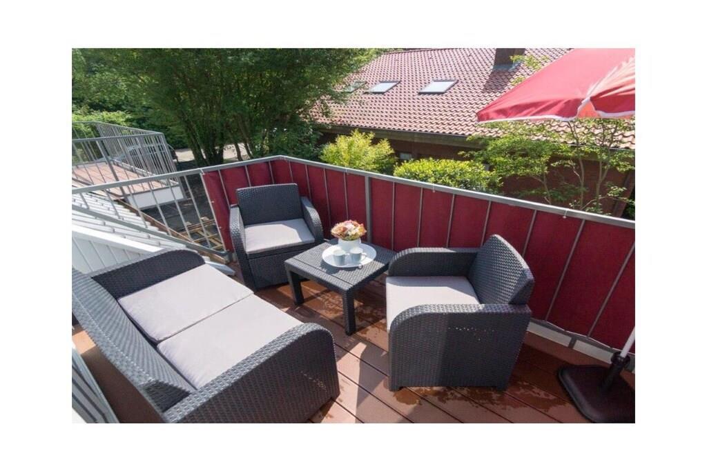 Ground floor: (Living room(TV, heating), Kitchen(electric kettle, toaster, coffee machine, oven, microwave, dishwasher, fridge, freezer), bedroom(double bed), bedroom(double bed), bathroom(shower, toilet, hairdryer)) Internet Access DSL, Vacuum Cleaner, hallway(Wardrobe Coatrack), storage, washing machine, balcony(balcony), garden furniture, parking, iron, drying cabinet