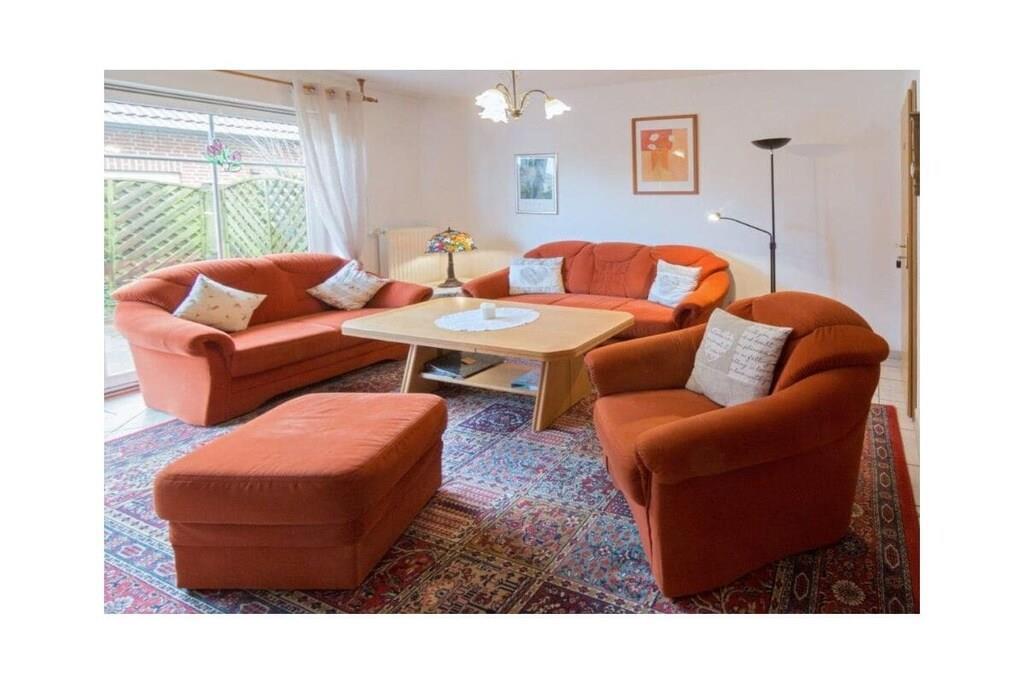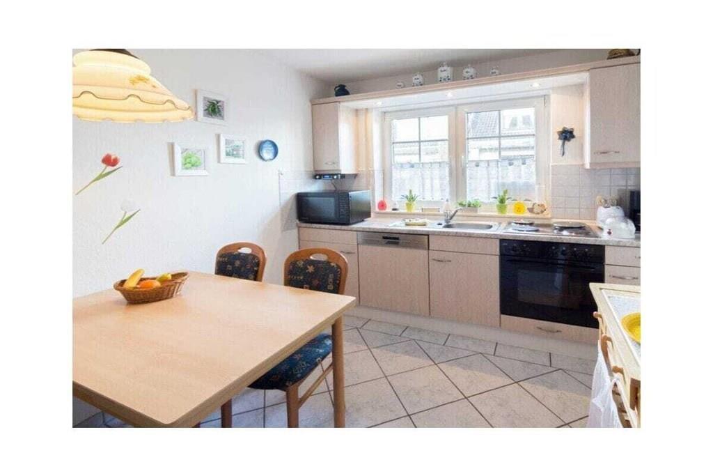 Holiday apartment Claudia This holiday apartment is ideal for a family with one child or for a family of three with an additional baby or toddler. You will quickly feel at home here, as a lot of emphasis was placed on a homely atmosphere when designing the holiday apartment. Claudia has a cozy living room with a comfortable seating area and a spacious wall unit with a display cabinet. Evening entertainment is well taken care of thanks to the modern flat screen TV. The kitchen-diner also offers plenty of space for cozy get-togethers. In addition to the usual cooking utensils and appliances, there is also a dishwasher and a microwave. With two bedrooms, the apartment is ideal for small families. The master bedroom is equipped with a comfortable double bed. In the second bedroom, which is also very comfortably furnished, there is a single bed. There is also the option of setting up a travel cot for a baby or toddler in one of the bedrooms. This can be made available to you on request. The spacious terrace is particularly nice, where you can end your vacation day. There is even a private beach chair available for you to protect you from the sometimes rough North Sea wind. For a carefree start to your vacation, book our linen package. This consists of bed linen, towels, shower mats, tea towels and a service set (toilet paper, dishwasher tablets, garbage bags, dish brush, cleaning cloth and other small helpers) for a carefree start to your vacation.