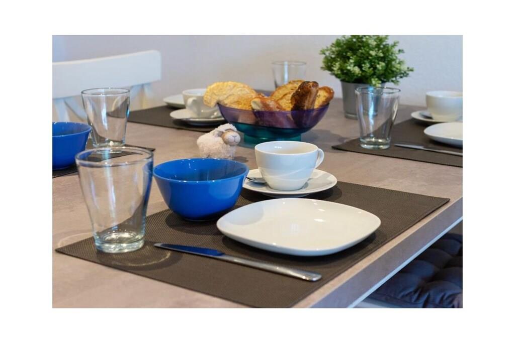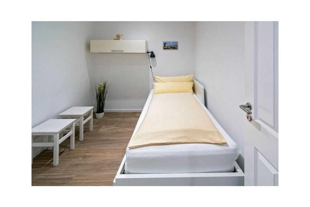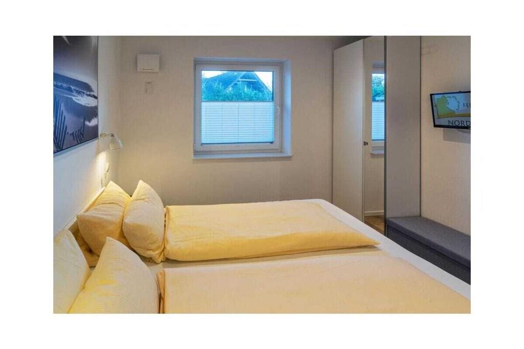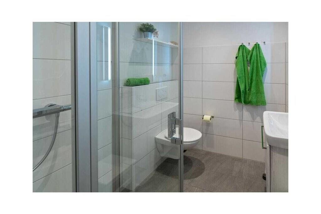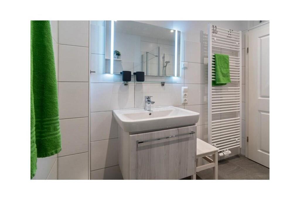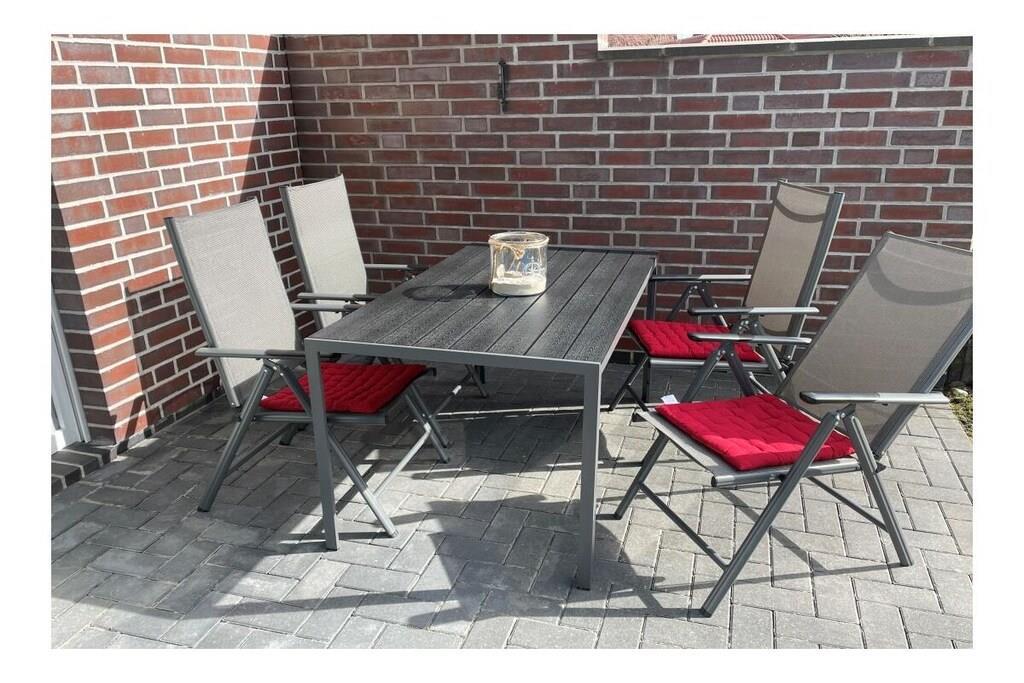 Holiday apartment Deichschaf, Westlinteler Weg 22 b, Norden The holiday apartment Deichschaf is located on the ground floor of a middle terraced house. The apartment has a small fenced garden and there is also a parking space for bicycles. The parking space for your car is in front of the house. This holiday home has been furnished in a modern way and with attention to detail. Shops for everyday needs can be reached on foot in just a few minutes and the beach in Norddeich or the popular Dörper Weg with its numerous shops and varied restaurants are only a few kilometers away. The combined living room with dining area and adjoining kitchen area offers enough space for cooking, eating and, last but not least, for cozy TV evenings. You can relax and enjoy meals together at the dining table. The couch with chaise longue and a small armchair with coffee table make up the living area. From the living room you can look and walk directly onto the terrace. On sunny and warm days you can enjoy the terrace and the adjacent garden in a southeasterly direction. A seating area with table and chairs is available for you outside. The entire garden is fenced and is therefore also suitable for small children. The holiday apartment has two comfortably furnished bedrooms. The right bedroom has a 200 x 200 cm double bed with separate mattresses. A closet offers enough space for your wardrobe and a TV and a bench complete the furnishings. The left bedroom is inside and has a 90 x 200 cm single bed, which can be extended to create another 90 x 200 cm bed. The kitchen is modern and functional. The kitchenette has been equipped with everything you need for cooking. This makes cooking fun even on vacation. This includes an oven with a combined microwave, a stove, a coffee machine, a coffee pad machine, a refrigerator, a dishwasher, a microwave and a toaster.