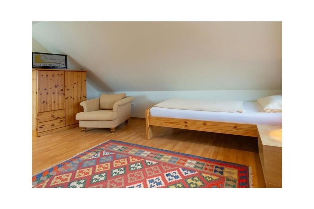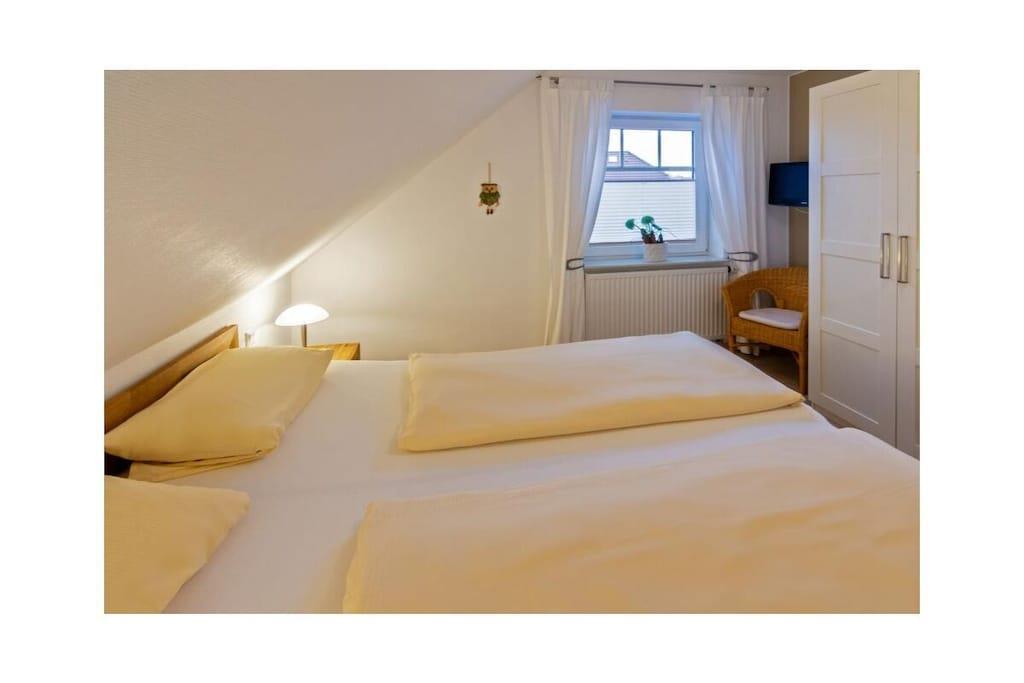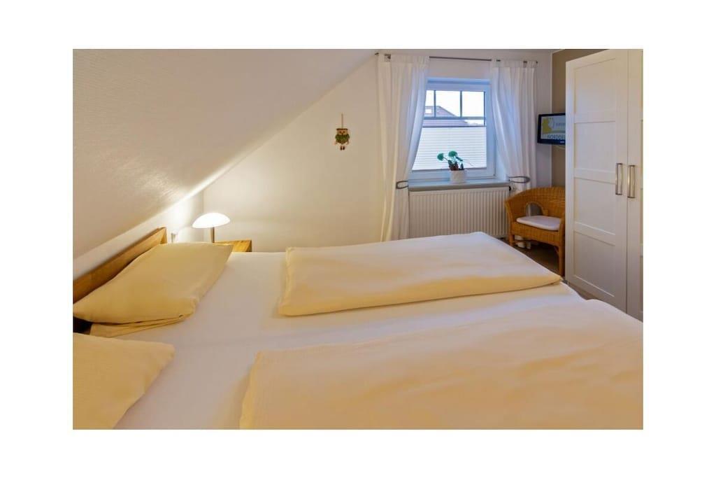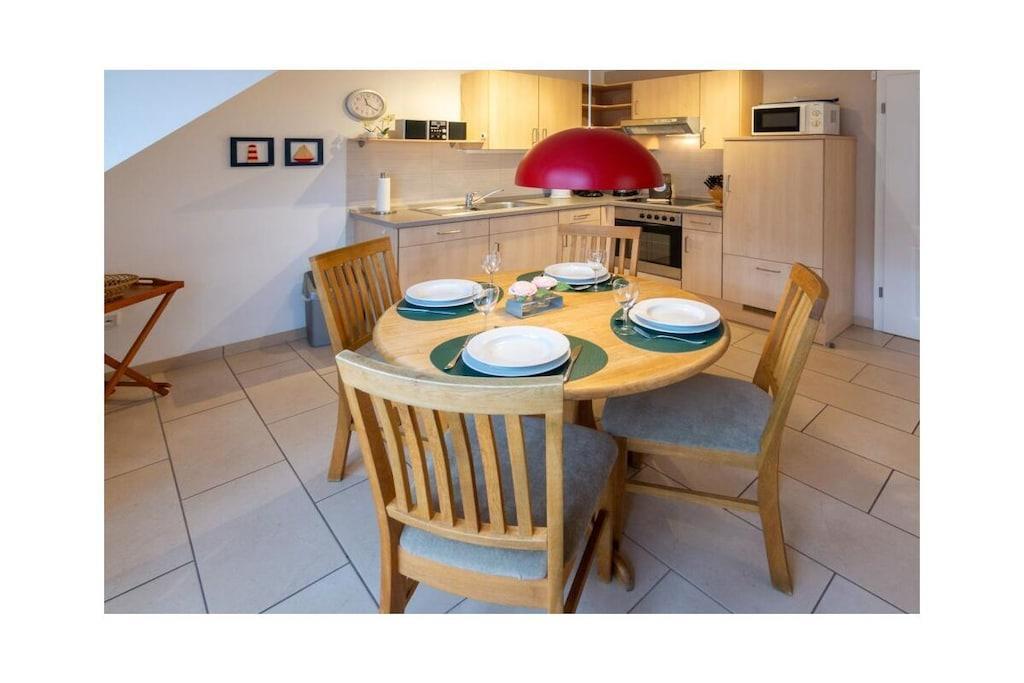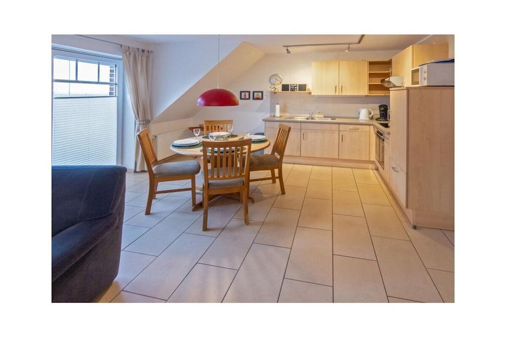 Ferienwohnung Wattlooper Tjarksstr. 3 Die Ferienwohnung “Wattlooper” in Norddeich ist eine moderne Obergeschosswohnung mit einer Wohnfläche von 75 m². Sie bietet Platz für bis zu 4 Personen und verfügt über einen großen Wohnraum mit bequemer Sitzgruppe, Wohnzimmerschrank und einem 102 cm großen Flachbildfernseher mit Satellitenempfänger und HDTV. Die integrierte Küchenzeile ist gut ausgestattet mit Ceranherd, Kühlschrank, Gefrierfach, Mikrowelle, Spülmaschine, Kaffeemaschine, Wasserkocher, Mixer, Toaster, Eierkocher und Elektrogrill. Ein Essbereich mit Esstisch und bequemen Stühlen ist ebenfalls vorhanden. Die Wohnung verfügt über zwei Schlafzimmer, eines mit Doppelbett und eines mit zwei Einzelbetten, sowie ein Badezimmer mit Dusche, Waschbecken und WC. Haustiere sind nicht erlaubt und die Wohnung ist eine Nichtraucher-Unterkunft. Ein Highlight der Wohnung ist der Balkon mit Gartenmöbeln, der einen schönen Blick auf den Deich bietet. Kostenloses WLAN und ein privater Parkplatz sind ebenfalls vorhanden. Weitere Annehmlichkeiten der Wohnung sind eine Heizung, eine Sofaecke mit Sofa und Sesseln, eine Garderobe, eine Waschmaschine, ein Trockner, Rollläden, ein Bügeleisen, ein Bügelbrett, ein Wäscheständer, ein Safe, ein Ganzkörperspiegel, Feuermelder, ein Staubsauger, ein Verbandskasten, ein Schuhschrank, Fliegengitter und Reinigungsmittel. Für Unterhaltung sorgen Internet, WLAN, TV, Radio, ein DVD-Spieler sowie Bücher und Spiele. Die Küche ist offen zum Wohnzimmer und ausgestattet mit einem Ceranherd, einem Gefrierfach oder -schrank, einer Espressomaschine, einer Mikrowelle, einem Kühlschrank und einer Spülmaschine. Weitere Küchengeräte umfassen eine Kaffeemaschine, einen Wasserkocher, einen Mixer, einen Toaster, einen Eierkocher und einen Elektrogrill. Geschirr und Besteck, Geschirrhandtücher und Gewürze sind ebenfalls vorhanden, ebenso wie ein Abfalleimer. Norddeich ist ein malerisches Küstendorf in Niedersachsen, das für seine entspannte Atmosphäre und die Nähe zur Nordsee bekannt ist. Es bietet eine Vielzahl an Freizeitmöglichkeiten, darunter Wattwanderungen, Fahrradtouren und den Besuch der Seehundaufzuchtstation. Der Fährhafen von Norddeich ist ein zentraler Ausgangspunkt für Ausflüge zu den ostfriesischen Inseln Juist und Norderney. Diese umfangreiche Ausstattung der Ferienwohnung “Wattlooper” sorgt für einen komfortablen und erholsamen Aufenthalt in Norddeich. Für den sorgenfreien Start in den Urlaub buchen Sie unser Wäschepaket. Dieses besteht aus Bettwäsche, Handtüchern sowie Duschvorleger, Geschirrhandtüchern und einem Serviceset ( Toi-Papier, Spülmaschinentabs, Müllbeutel, Spülbürste, Putzlappen und sonstigen kleinen Helfern) für den sorglosen Start Ihres Urlaubes.