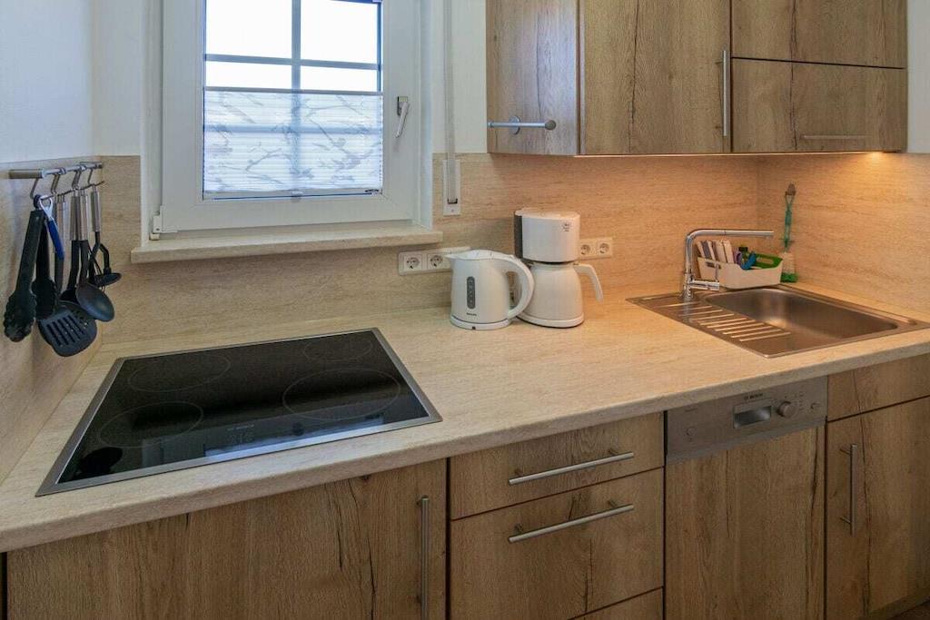 Ground floor: (Kitchen(Tea Towels, Kitchenette, hob, electric kettle, toaster, coffee machine, microwave, dishwasher, fridge), Living/diningroom(Armchair, Sofa, TV, dining table), bedroom(Wardrobe, double bed), bedroom(Wardrobe, single bed, single bed), bathroom(Mirror, toilet, shower, washbasin), storage(Vacuum Cleaner)) Fire Alarm, Hot Water, Internet Access DSL, Internet Access ISDN, Vacuum Cleaner, Internet access, Internet access, heating, terrace(Sun Umbrella, garden furniture), parking