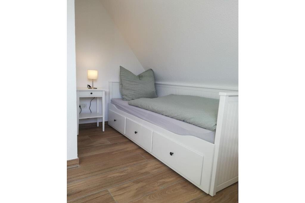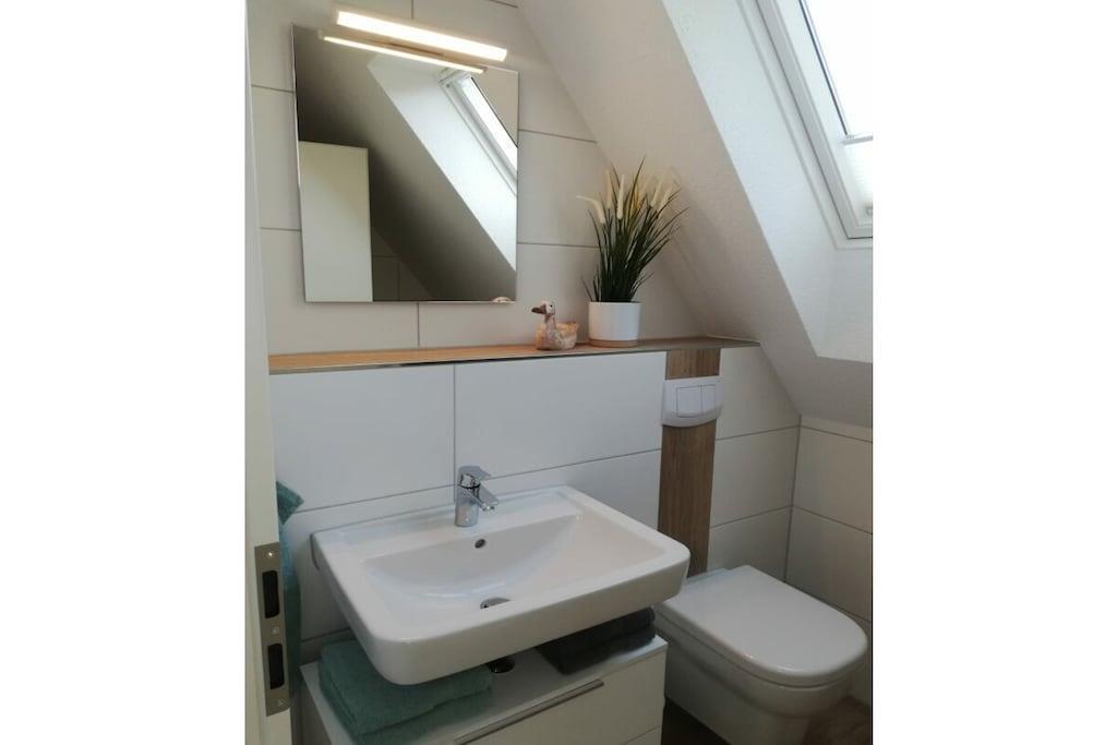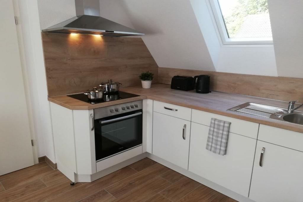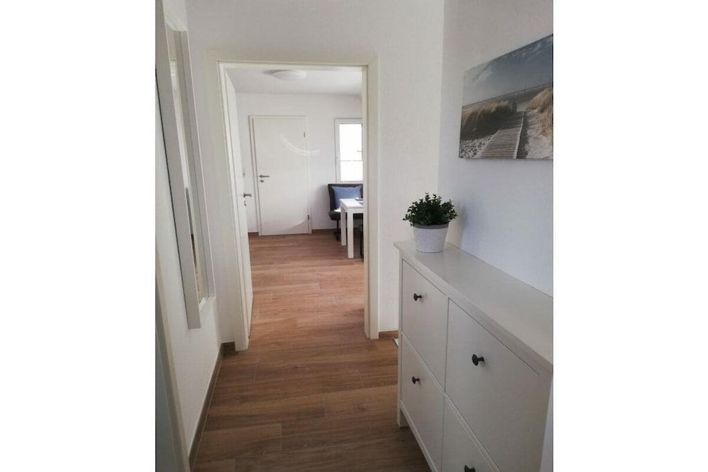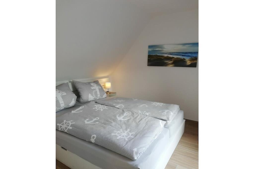 The Cornelius holiday apartment consists of a kitchen-living room, two bedrooms, and a bathroom with a shower. One of the bedrooms has access to a sunny balcony. A parking space is located directly in front of the front door. The kitchen is equipped with an oven, ceramic hob, dishwasher, refrigerator with freezer, coffee maker, kettle, toaster, microwave, and various kitchen utensils and dishes. The bedroom offers a 160 cm × 200 cm double bed and a single bed (80 cm × 200 cm), both with blackout blinds. A vacation with a baby is a breeze. Upon request, we are happy to provide you with a travel cot, a high chair, a bottle warmer, and a stair gate.
